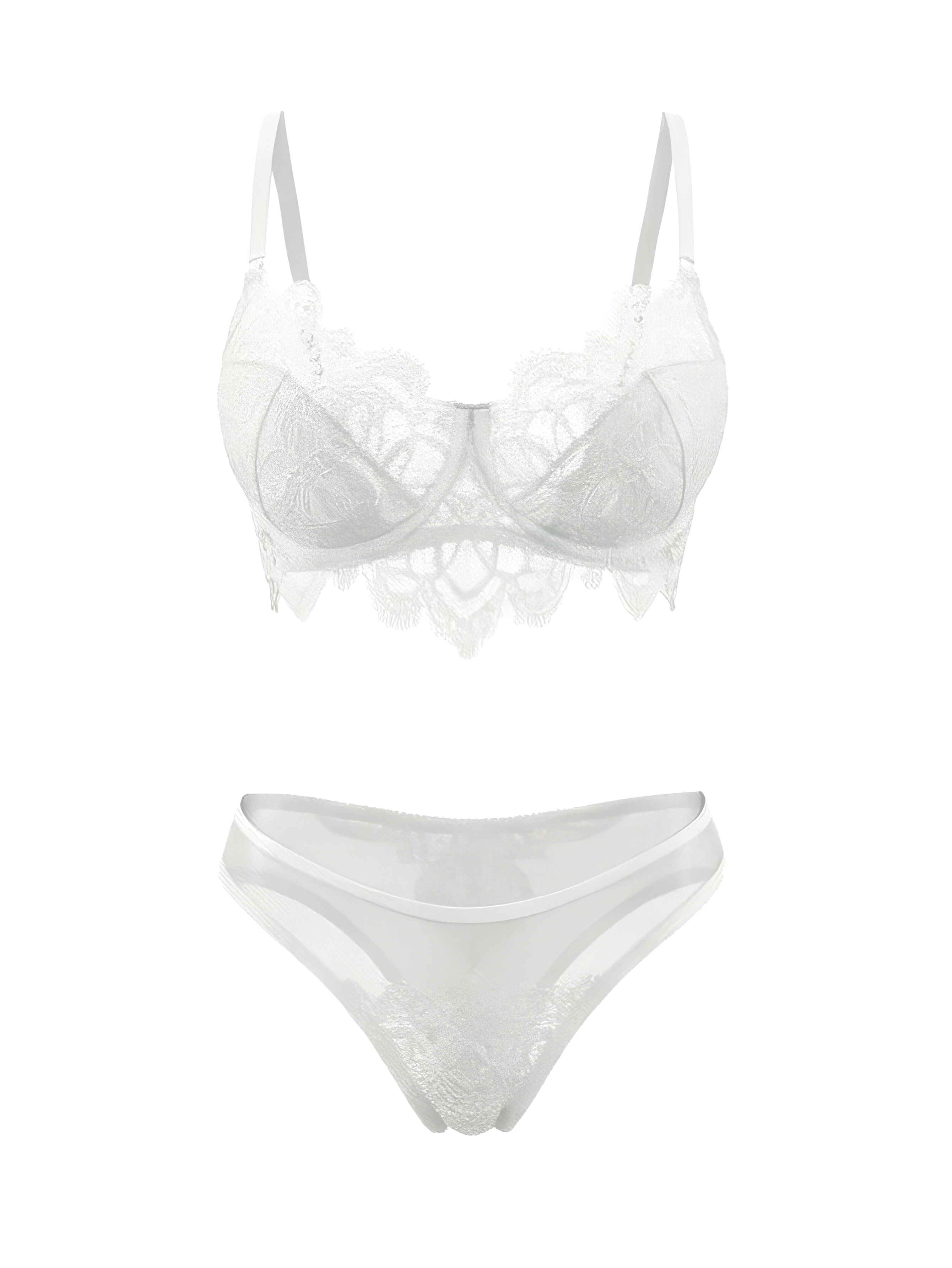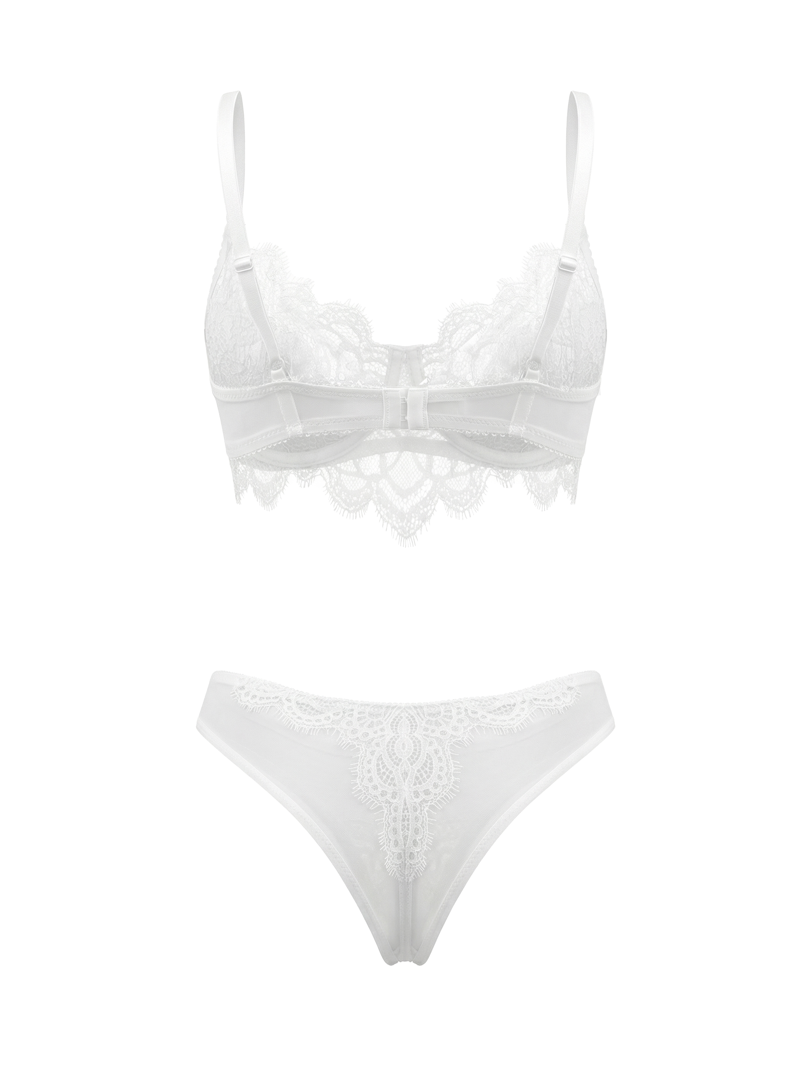 Кружевной бюстгальтер подчёркивает грудь деликатно, создавая ощущение чистоты и лёгкости.