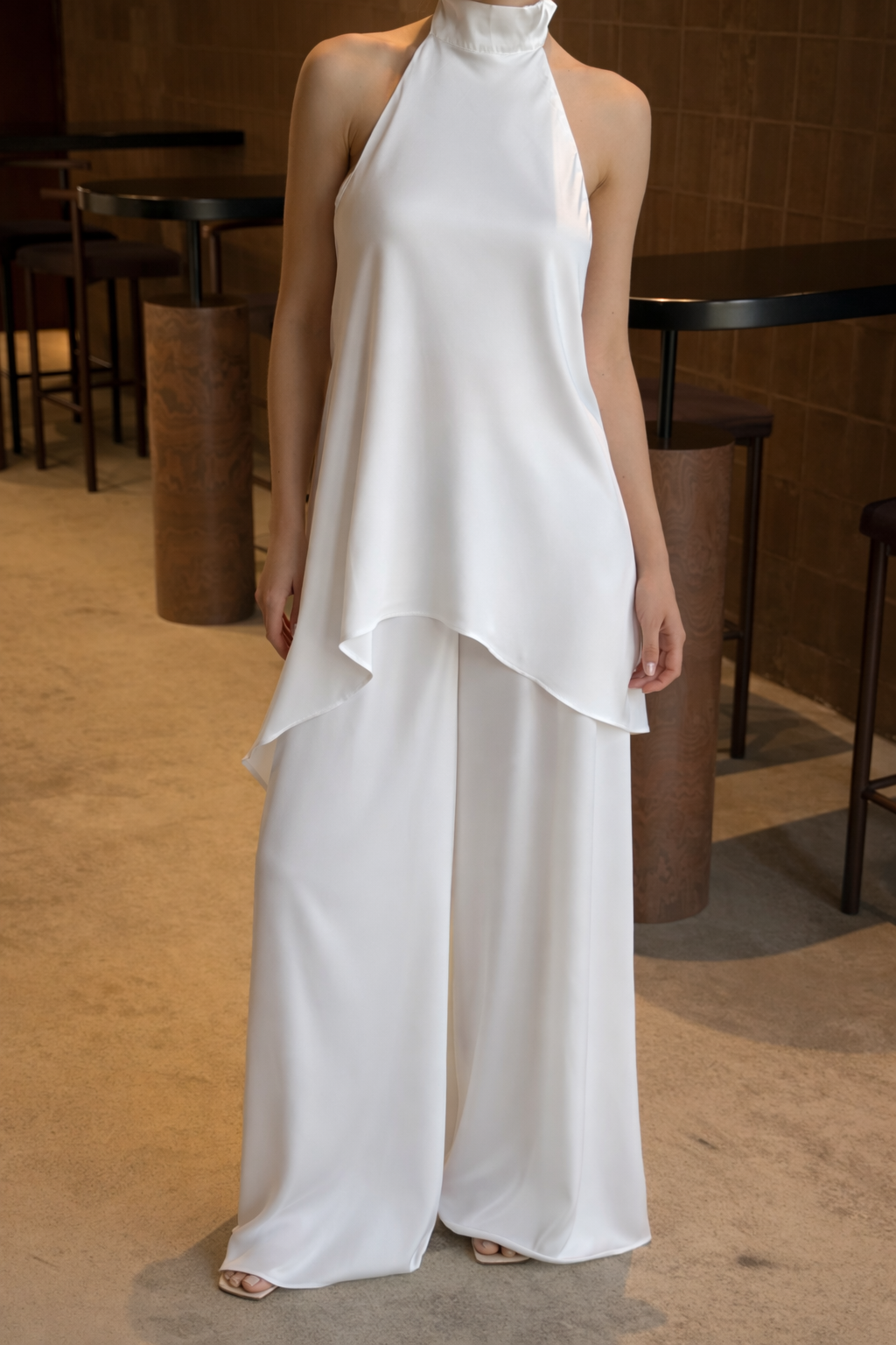 Широкие брюки-палаццо формируют вытянутый, изящный силуэт. Невесомая ткань мягко охлаждает кожу и красиво движется при каждом шаге. Идеальны для особых выходов, отпусков и моментов, когда хочется выглядеть роскошно.