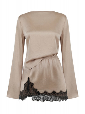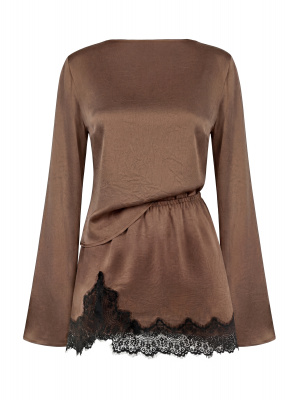 Комплект-двойка с кружевной отделкой из жатого шелка (брауни)