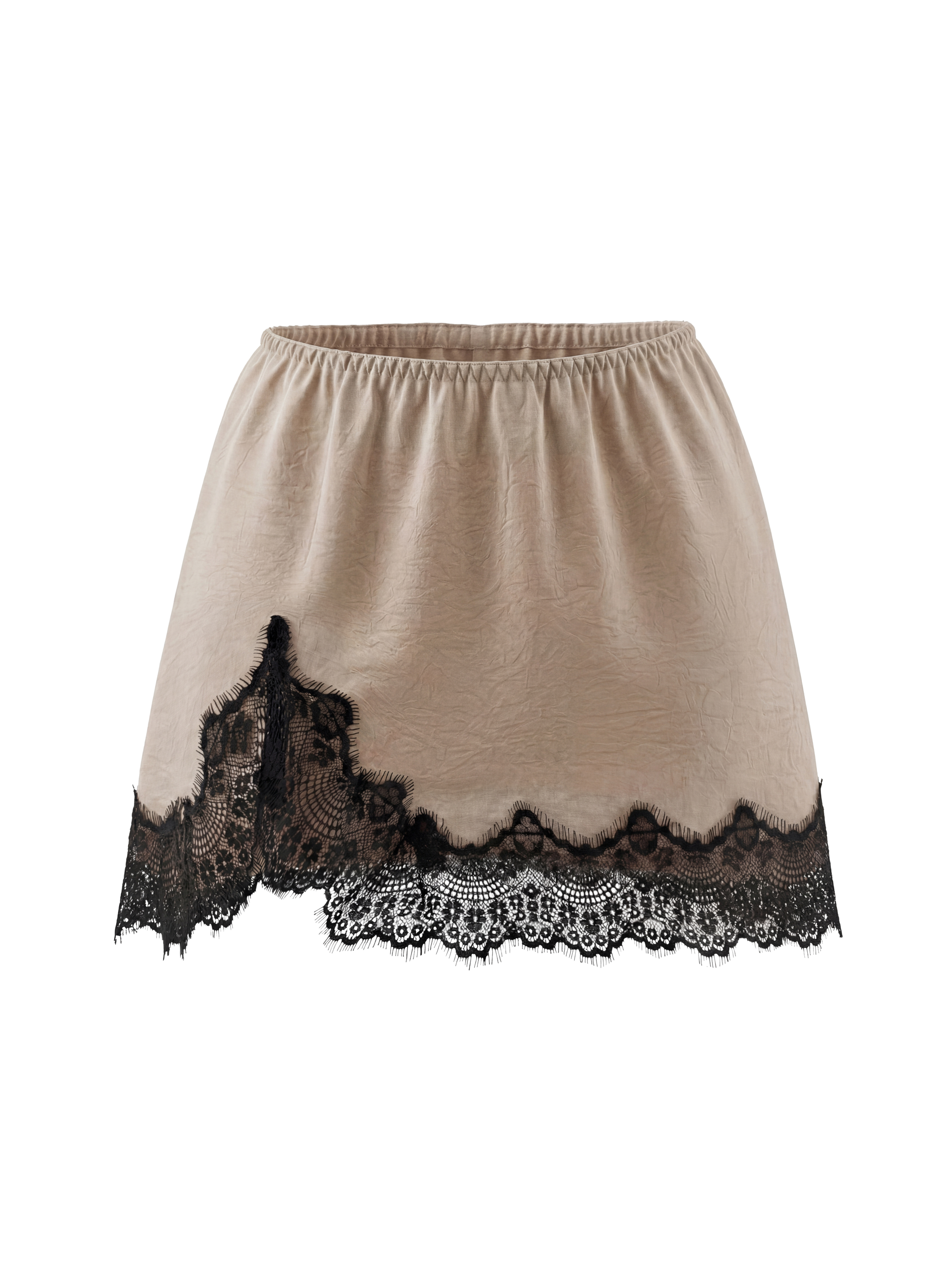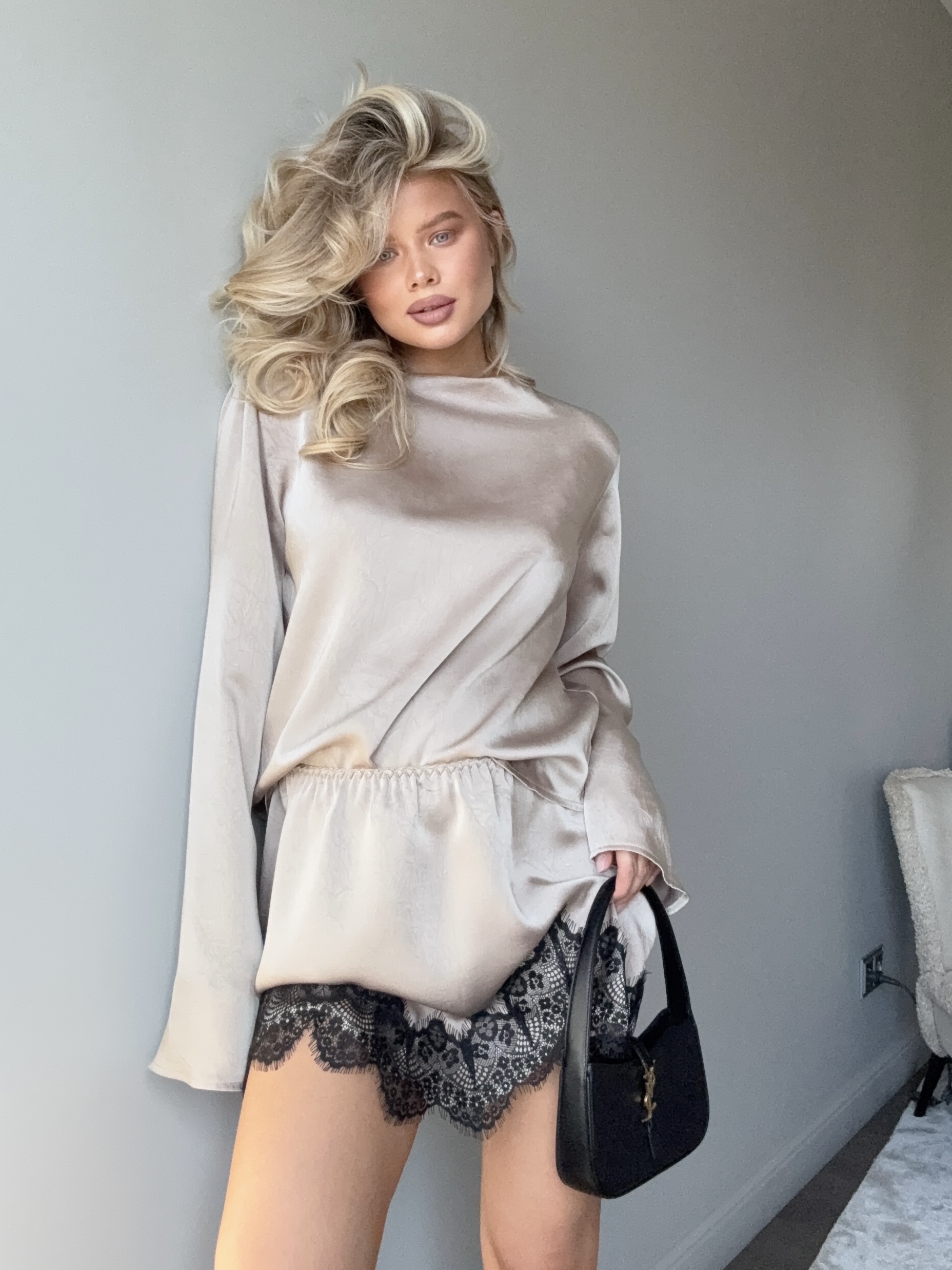 Контрастное кружево по низу юбки добавляет игривости и делает образ более выразительным.