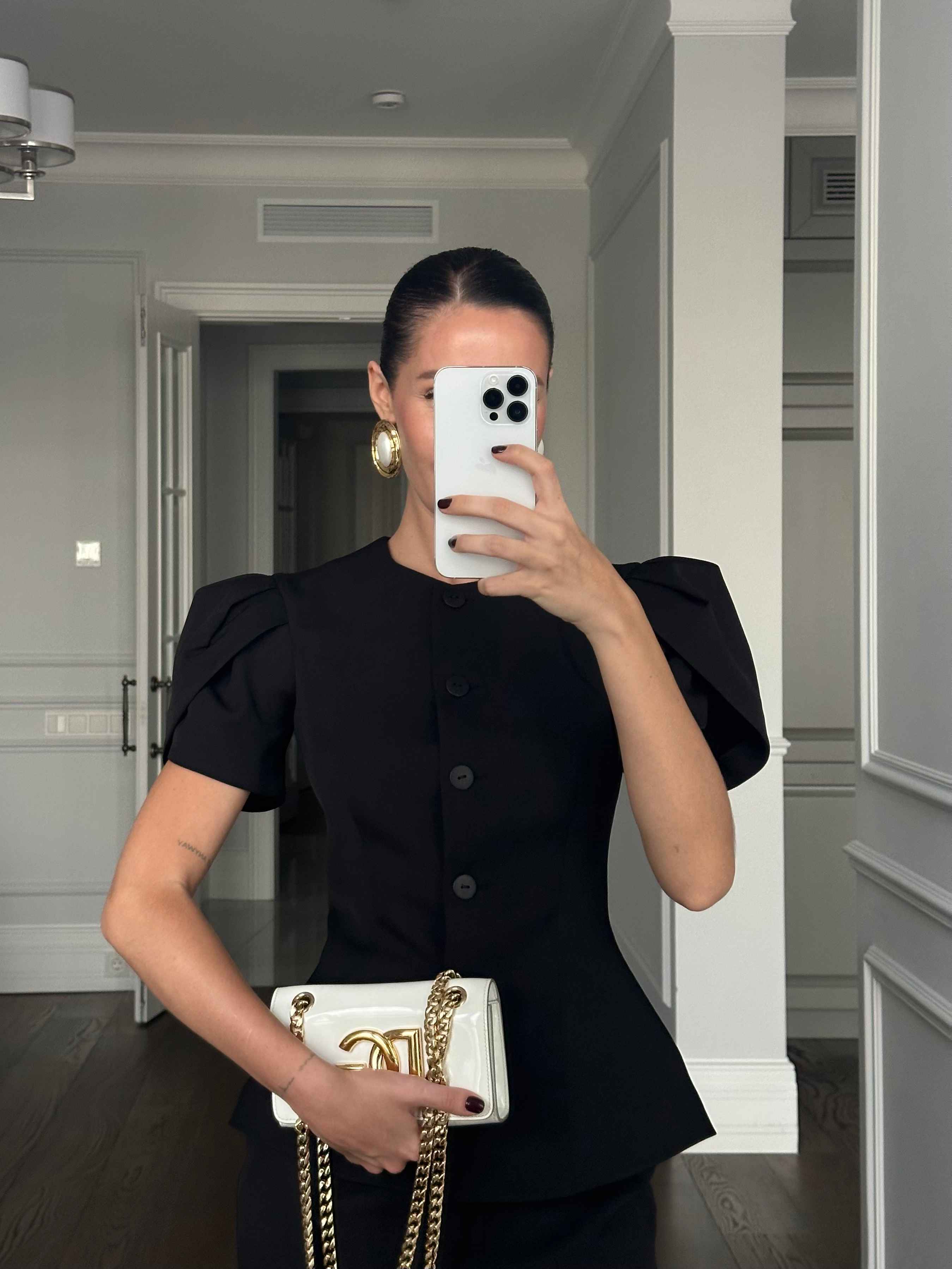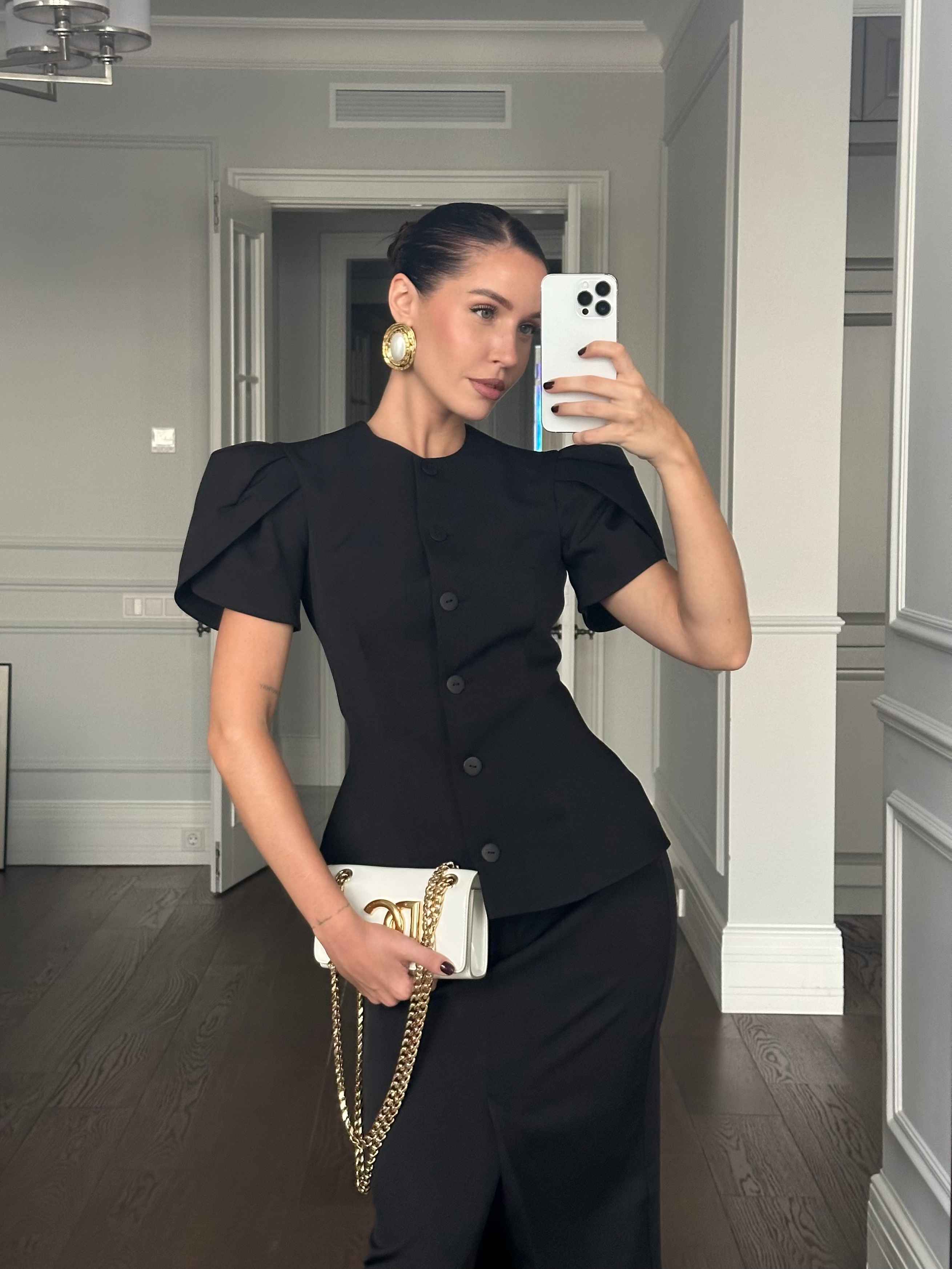 Классическая длина и лаконичный дизайн делают жакет универсальным элементом гардероба. Короткий фигурный рукав добавляет образу изюминку, а аккуратные линии подчеркивают талию, делая её визуально более стройной. Жакет идеально сидит по фигуре, создавая гармоничный и стильный силуэт. Он станет вашим верным спутником в создании изысканных образов, будь то деловой ланч или вечерний выход.