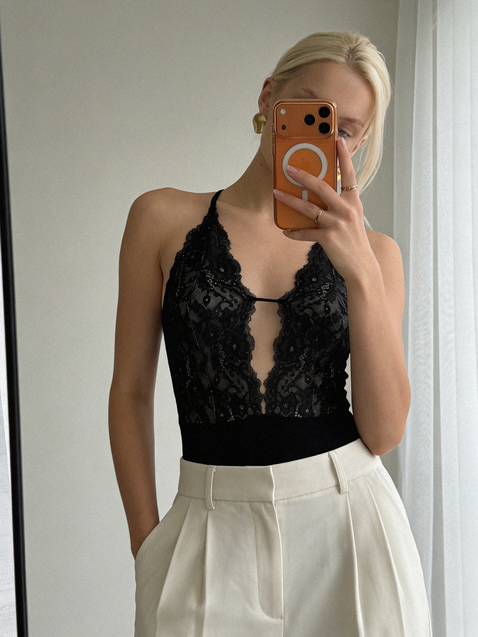 Тонкое кружево с фигурным краем создаёт выразительный акцент, сохраняя ощущение лёгкости.