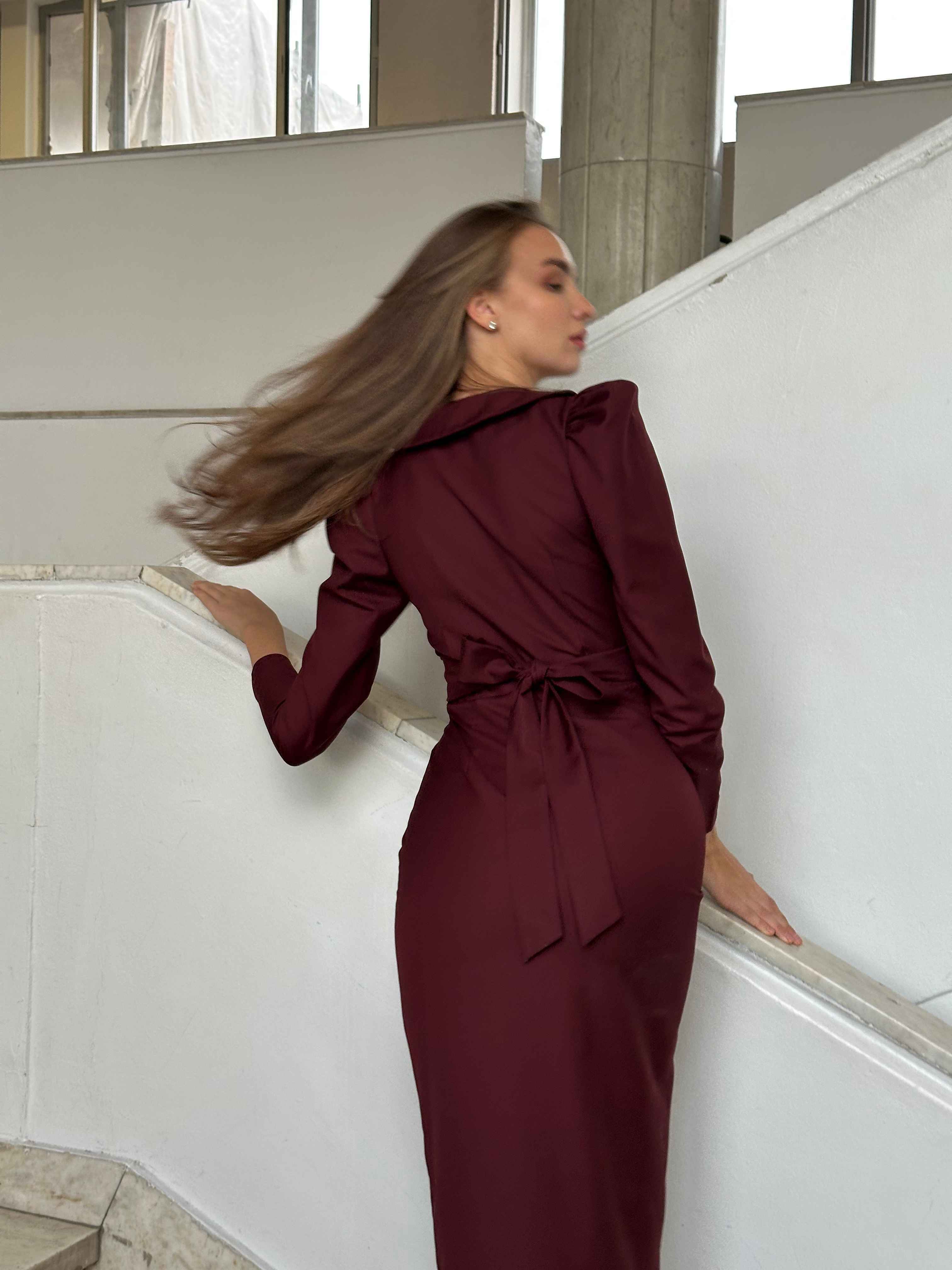 Позади платья есть моделирующий пояс, который вы можете самостоятельно регулировать по по плотности завязки.