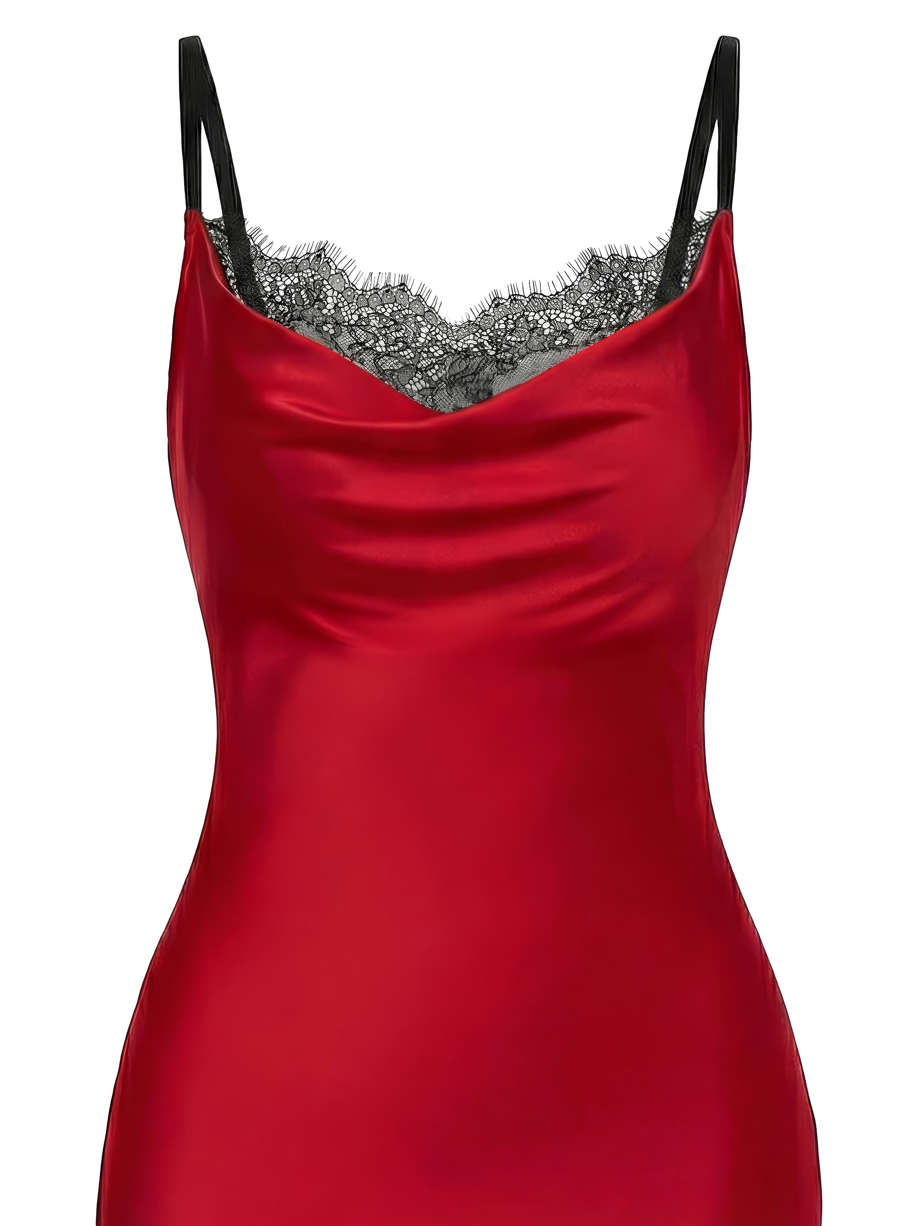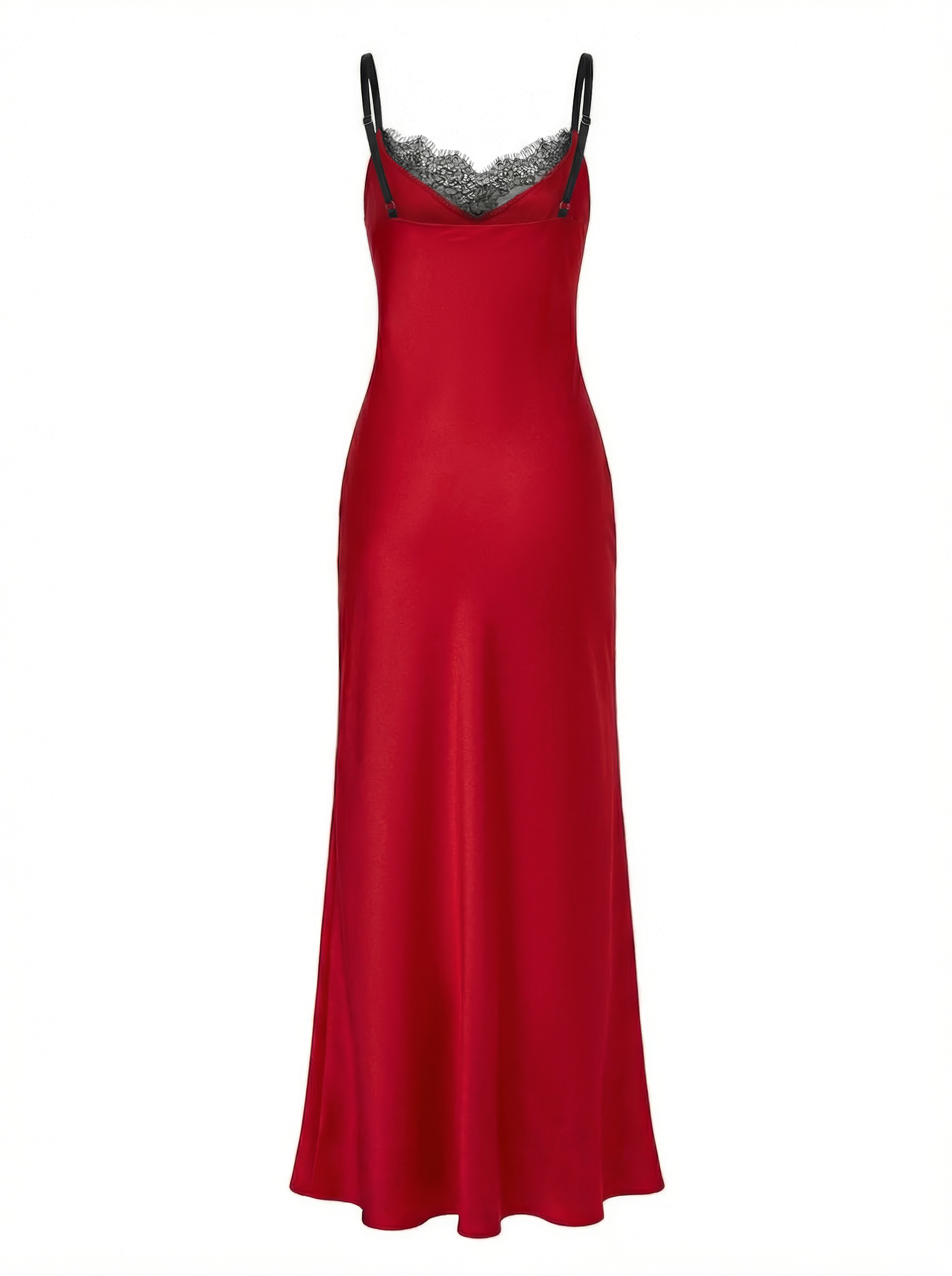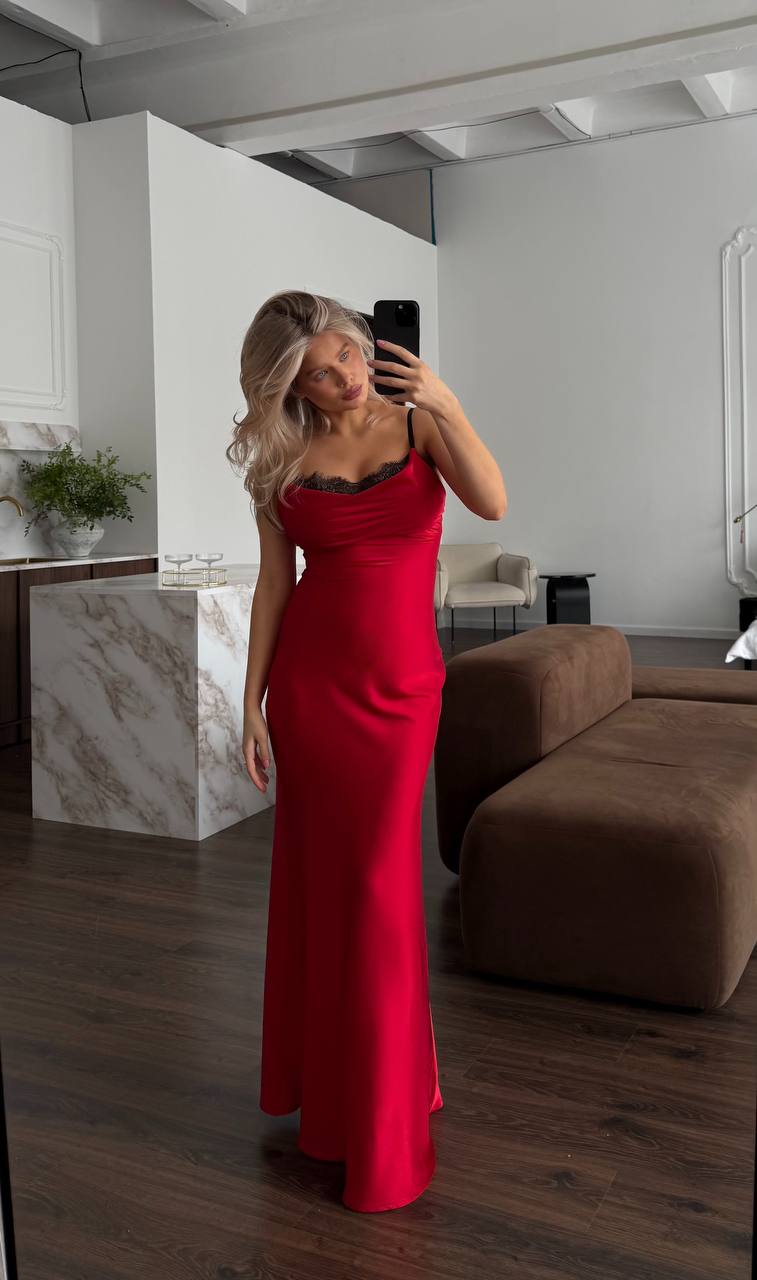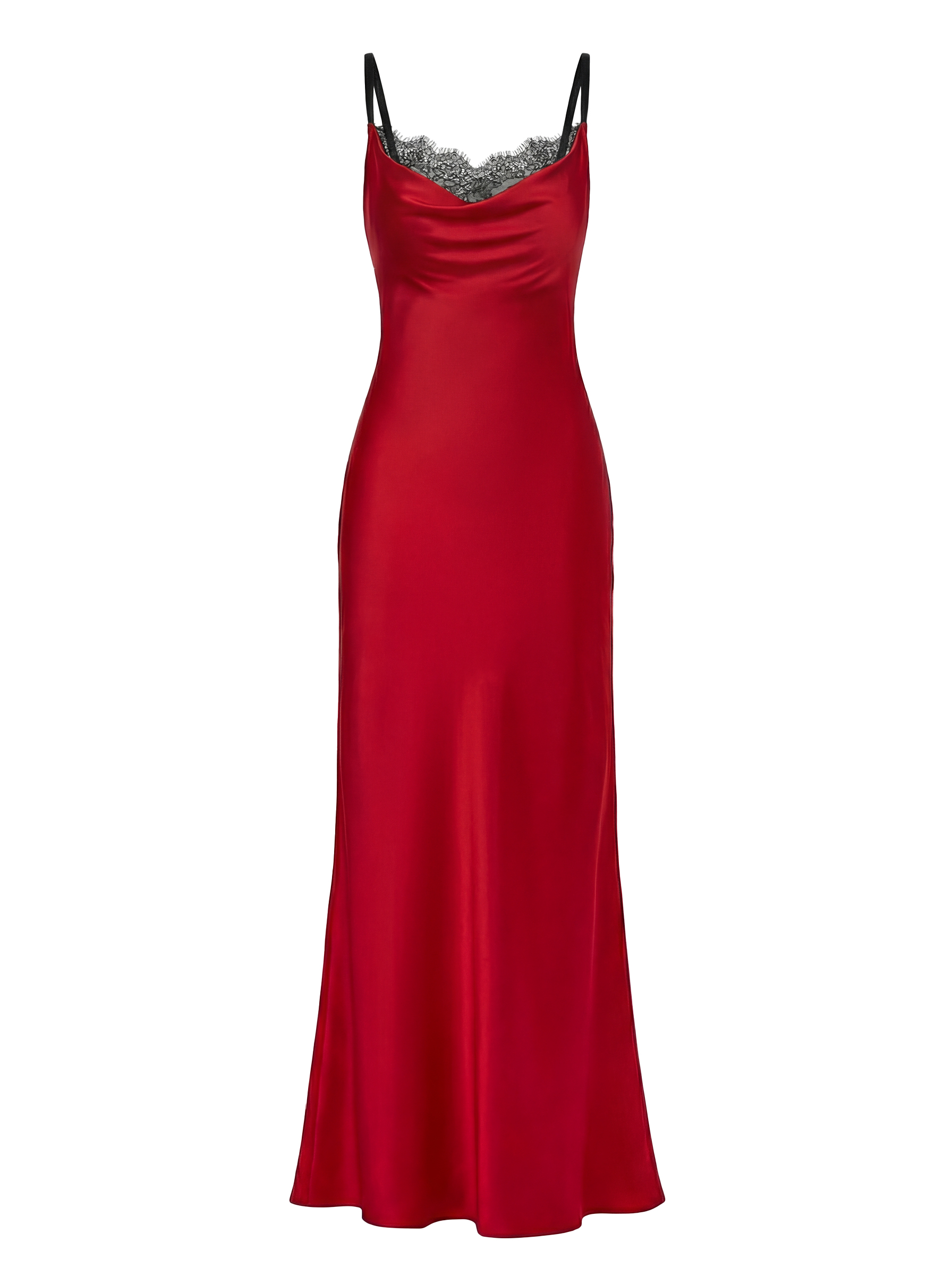 Платье-комбинация с кружевным декольте, длина «макси» (эффектный красный)