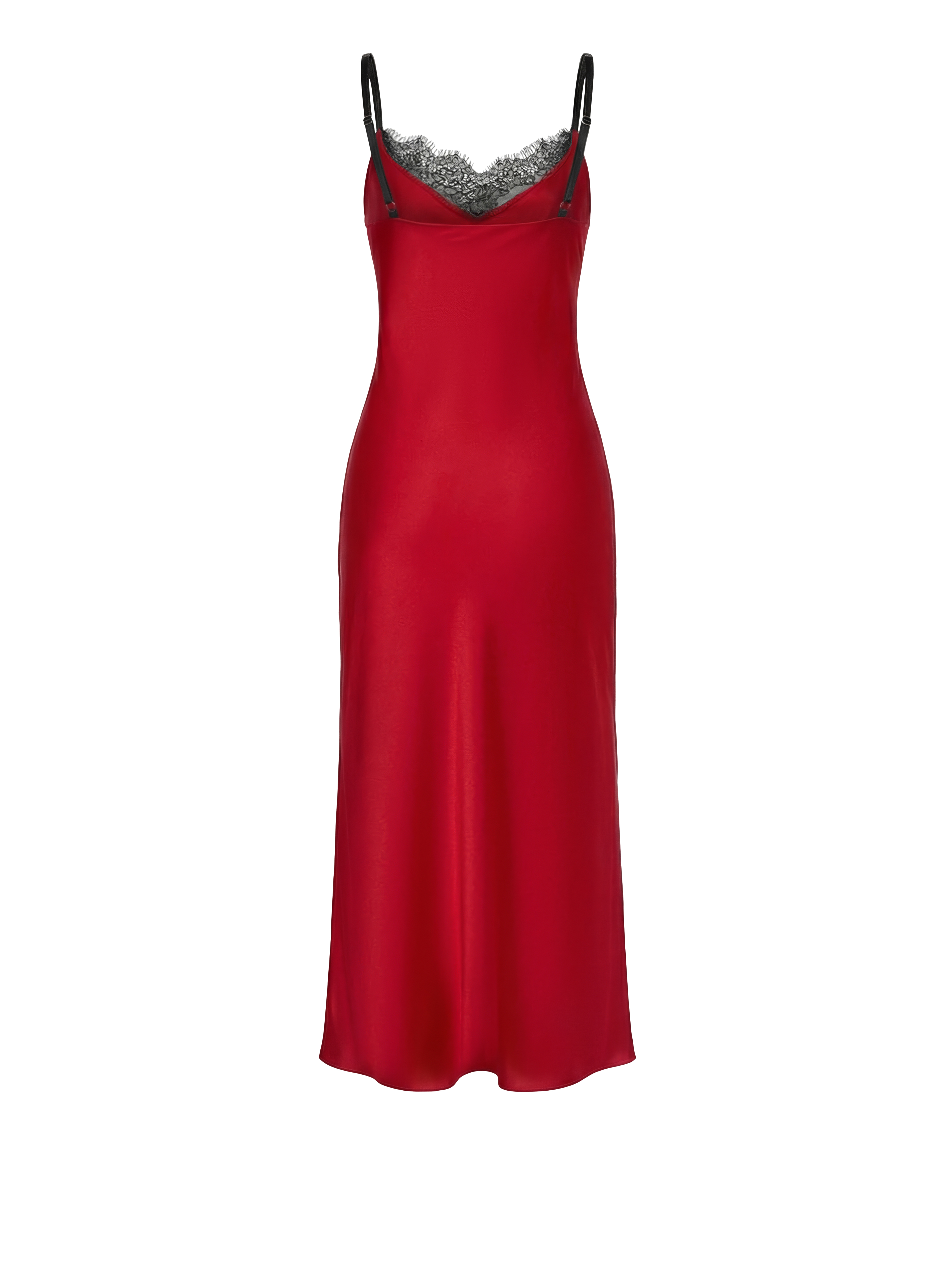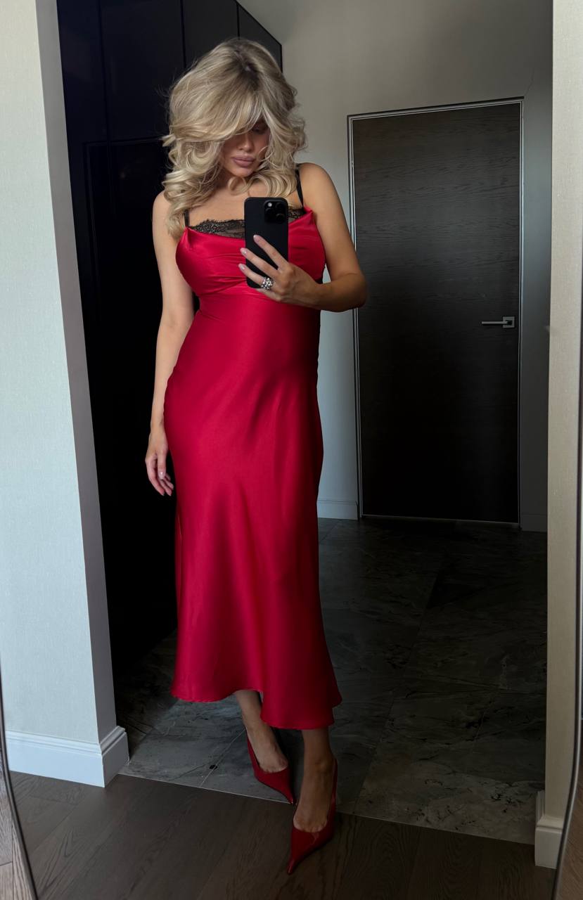 Платье-комбинация с кружевным декольте, длина «миди» (эффектный красный)