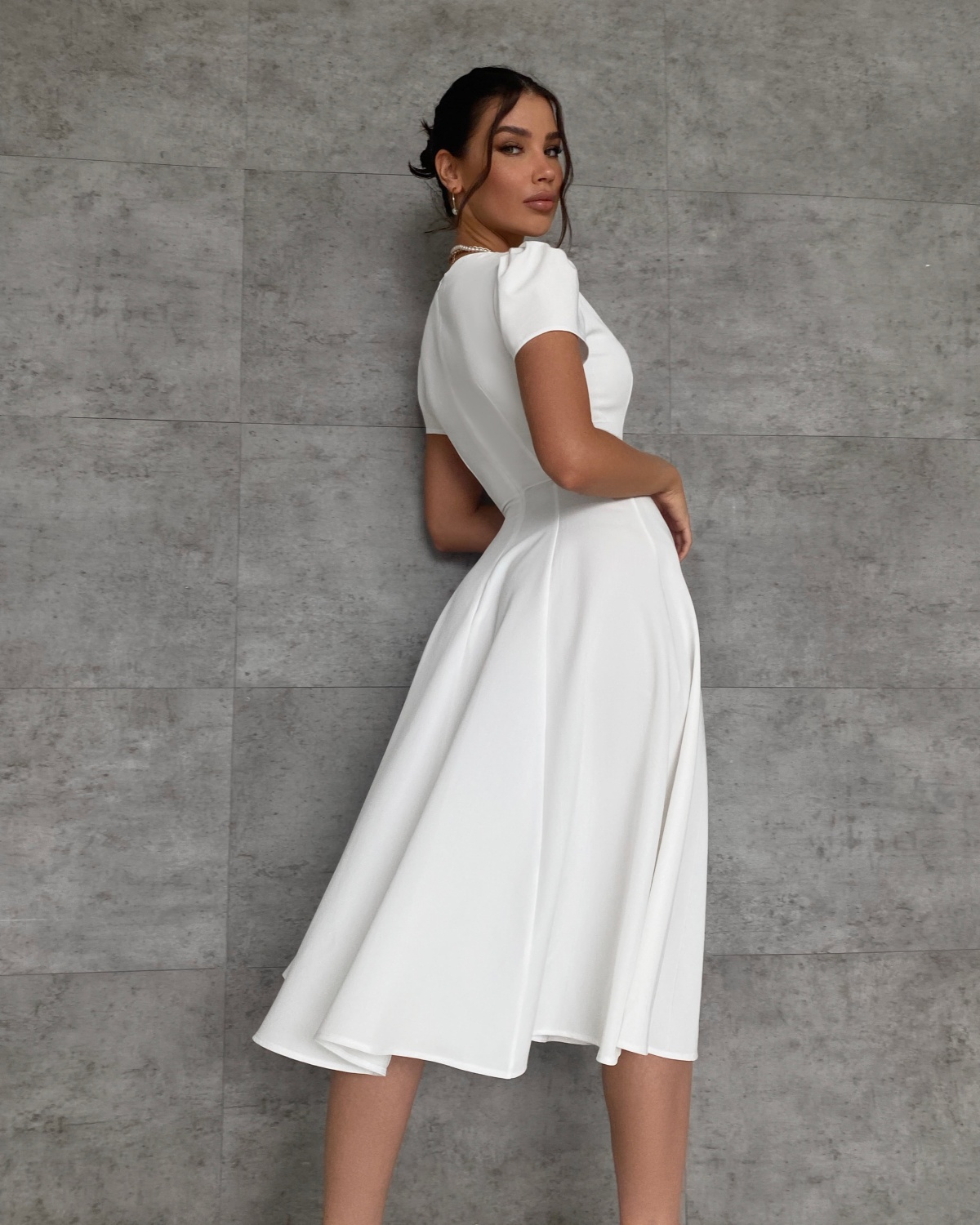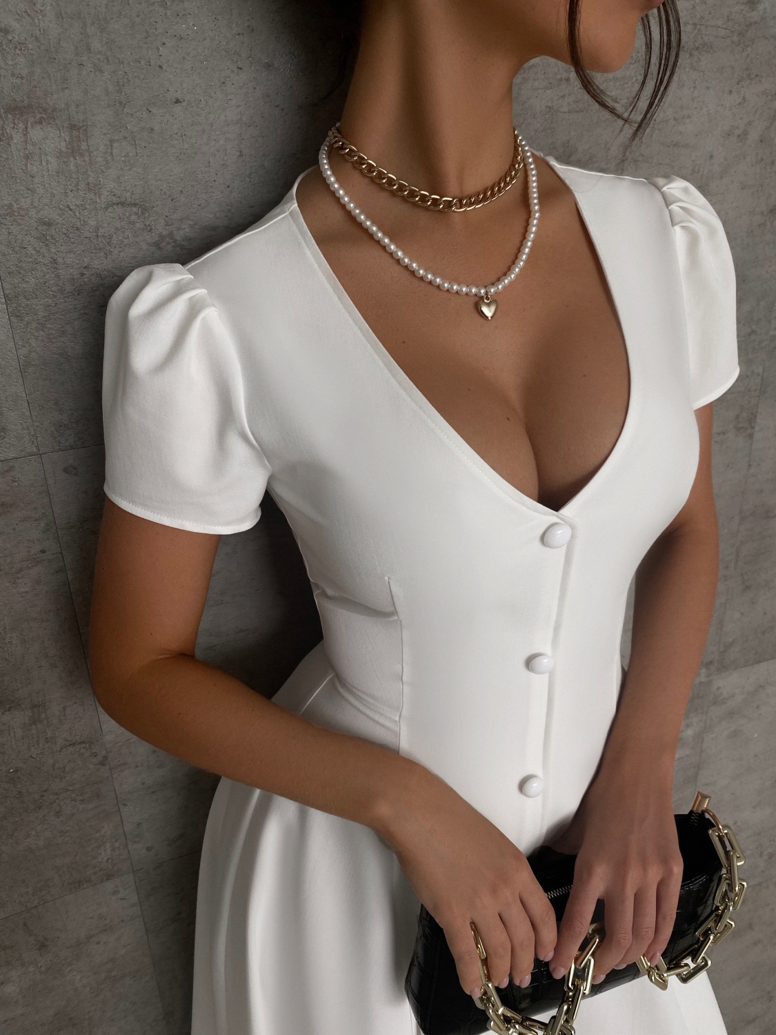 Стильный дизайн платья "Париж" SS, миди в белом цвете позволит выглядеть неповторимо и привлекательно в любой ситуации.
