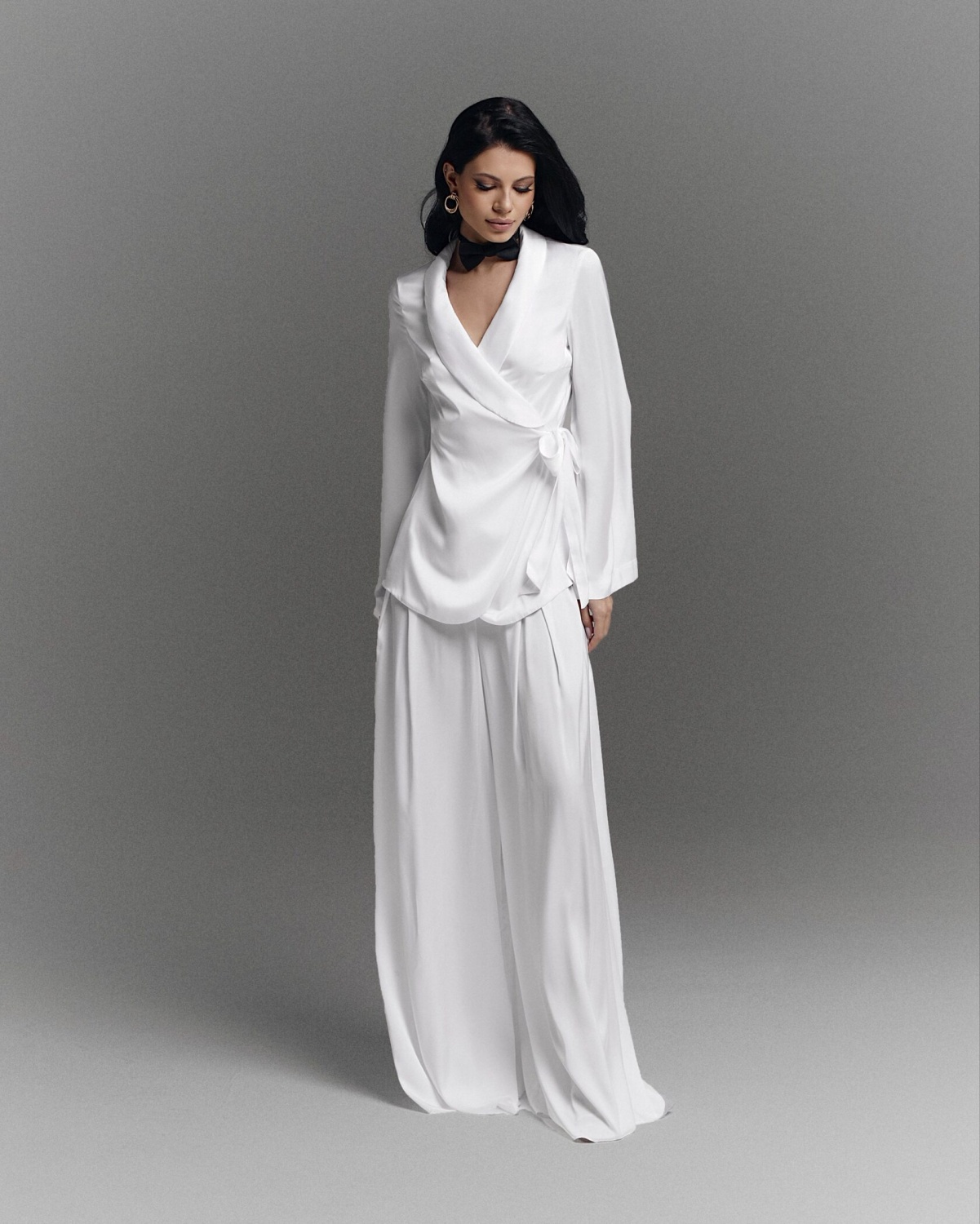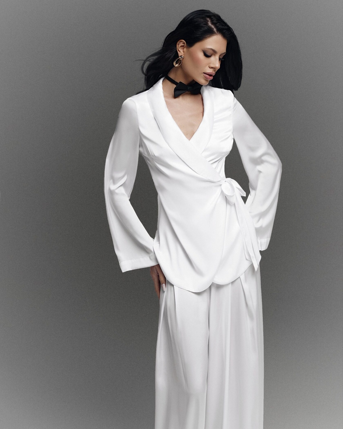 Блуза Трейси на запах к брюкам (белый)