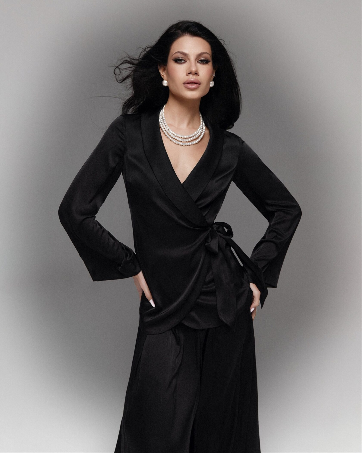Блуза Трейси на запах к брюкам (черный)