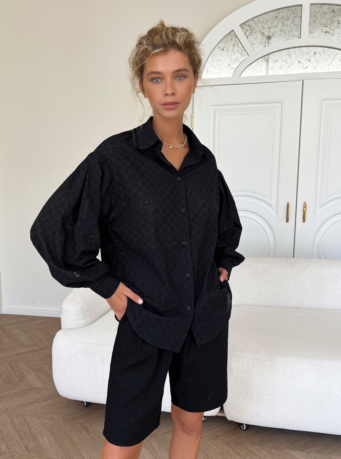 Рубашка Кэри из шитья (черный)