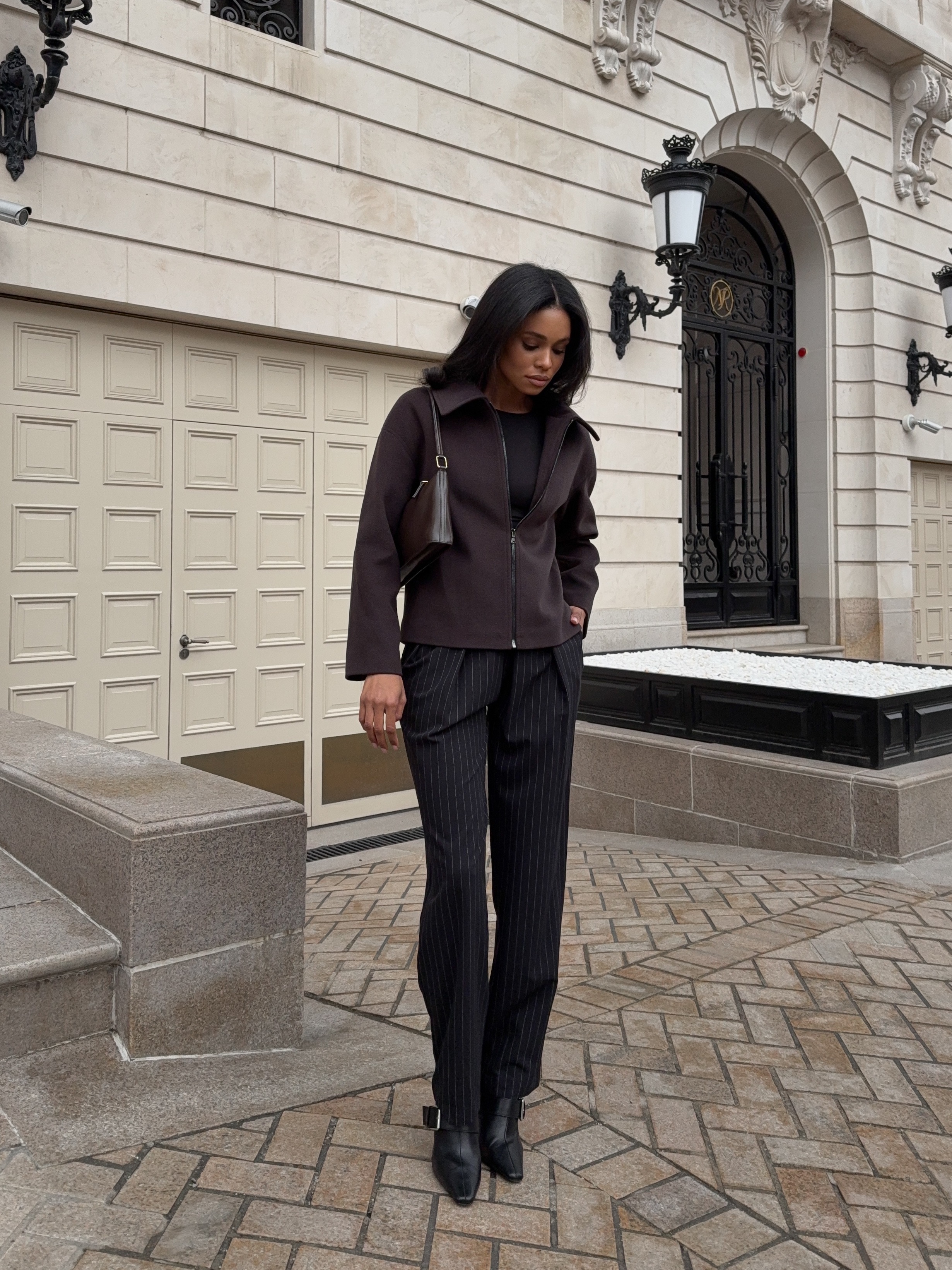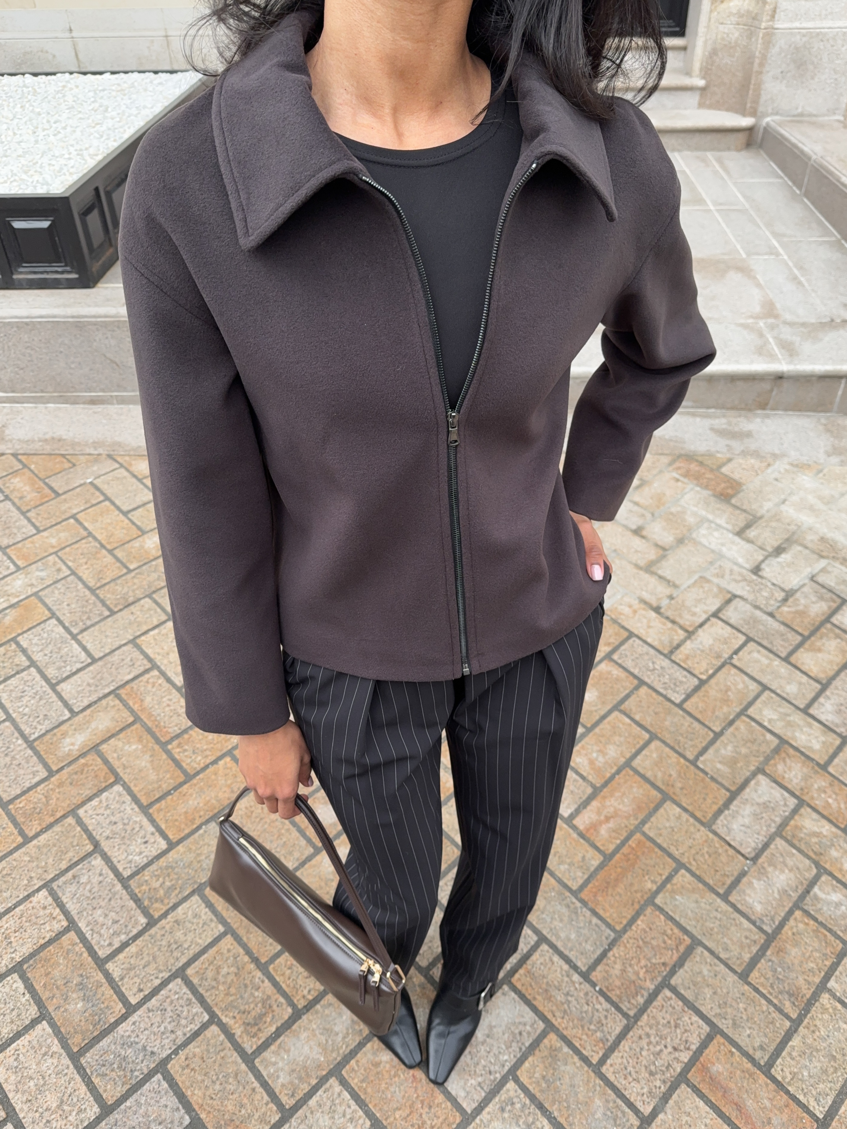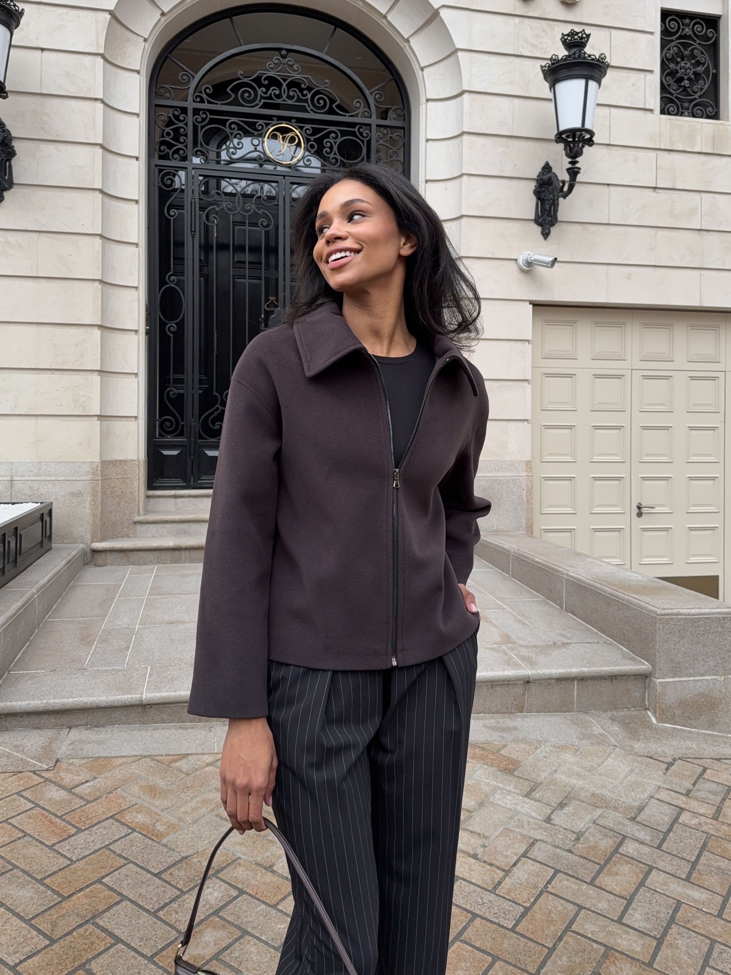 Бомбер из шерсти с широким воротником и аккуратной молнией. Ничего лишнего — только чистота линий и комфорт.