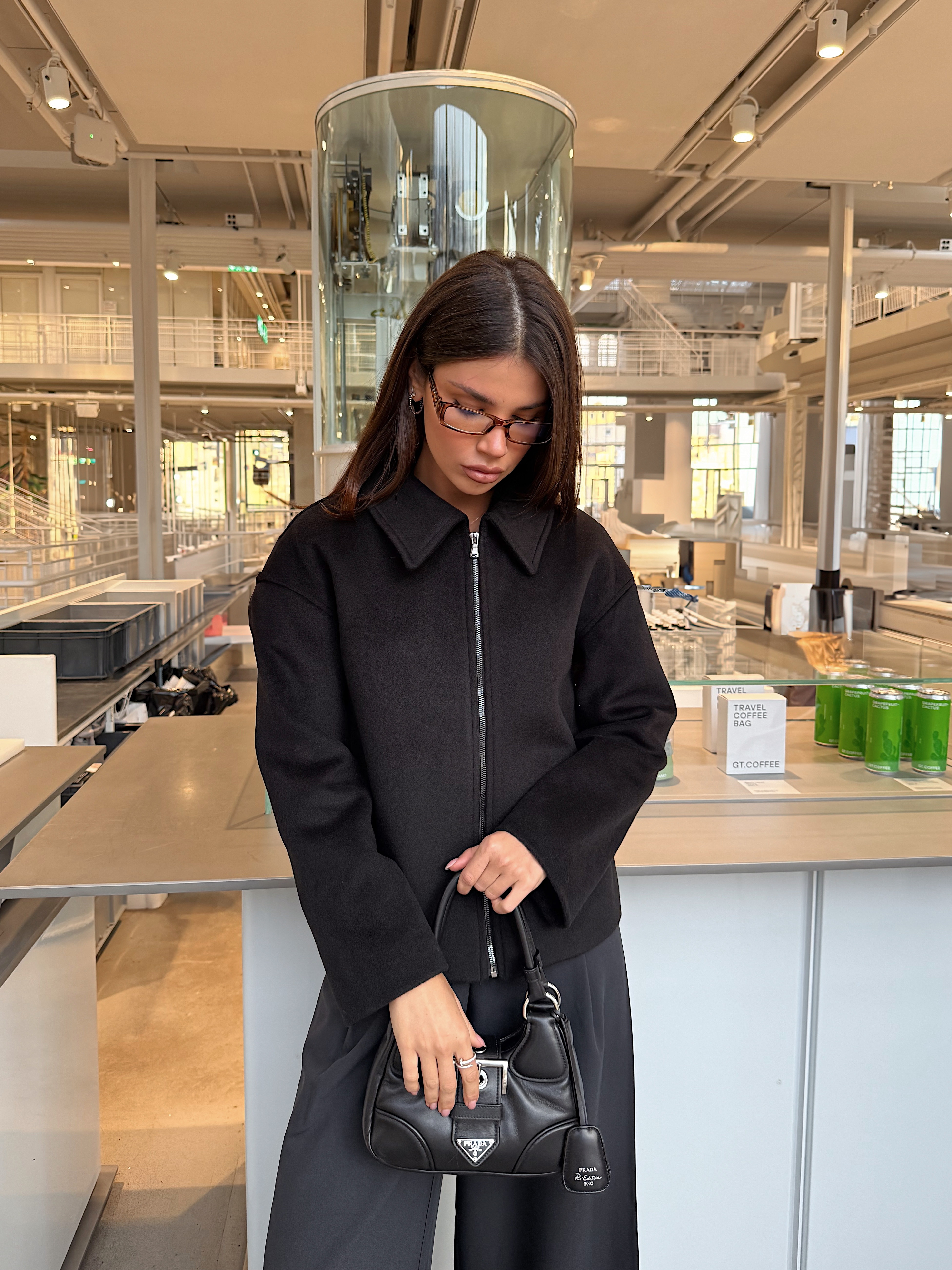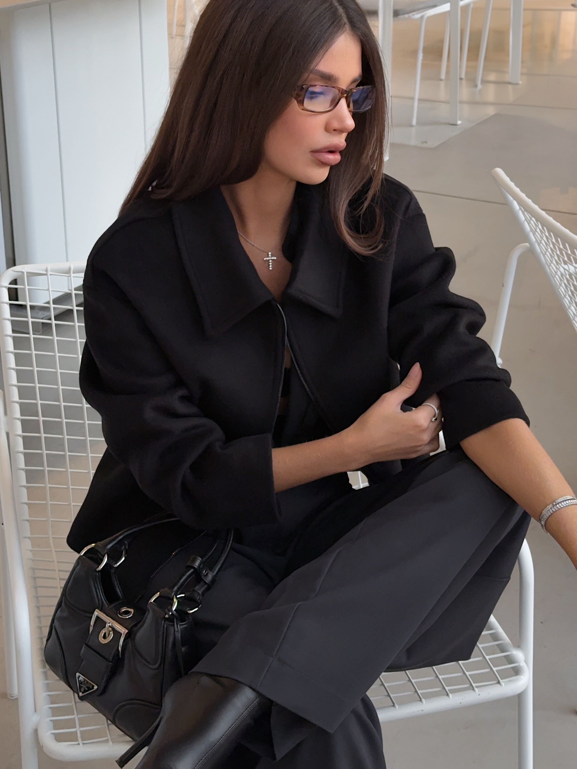 Бомбер из шерсти с широким воротником и аккуратной молнией. Ничего лишнего — только чистота линий и комфорт.