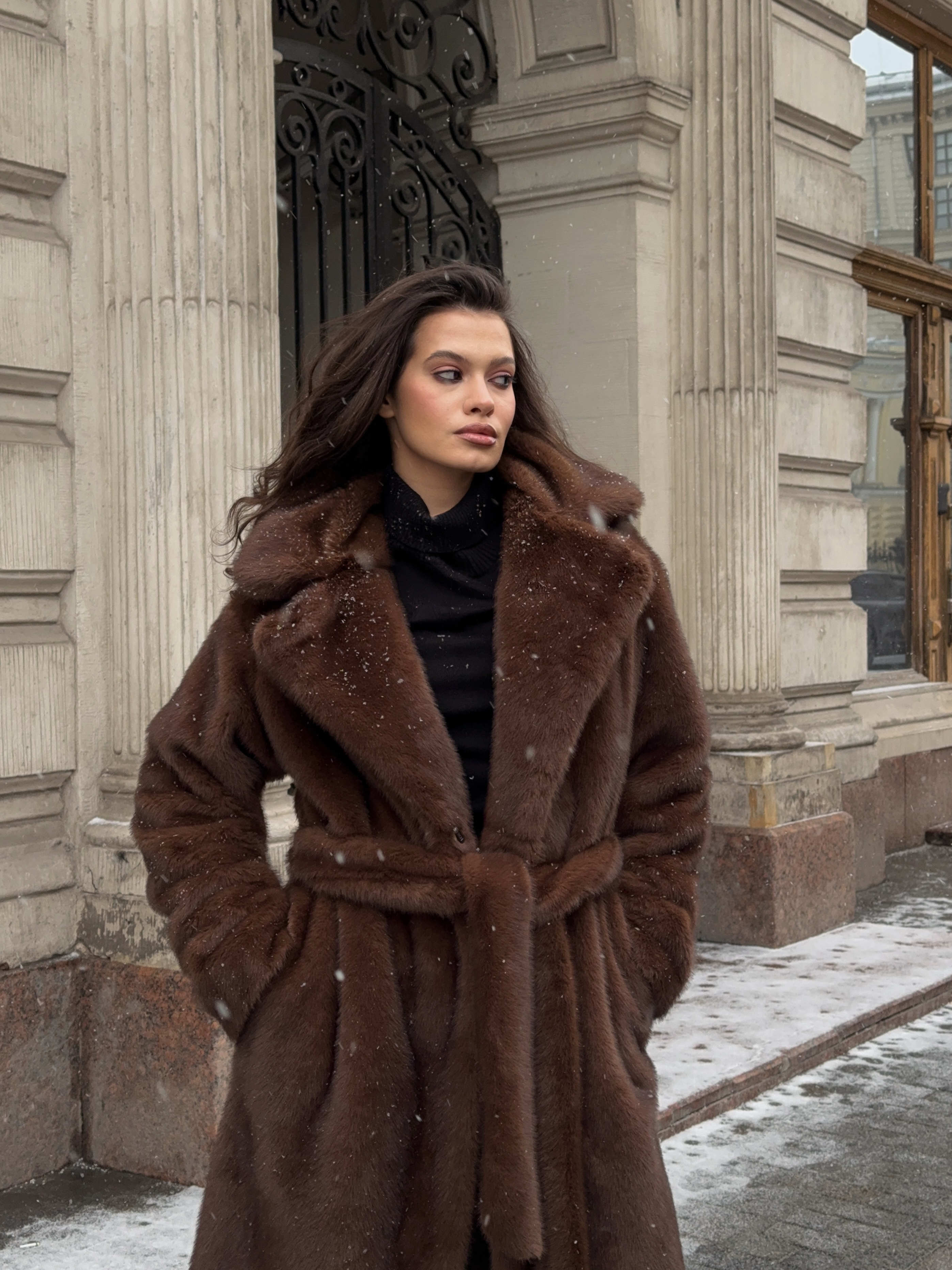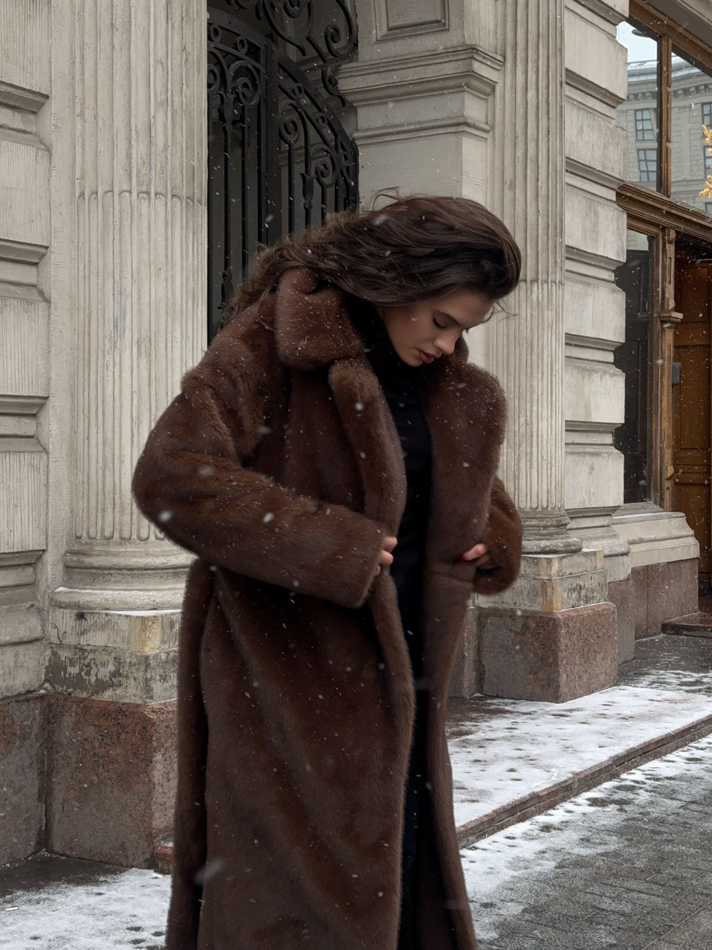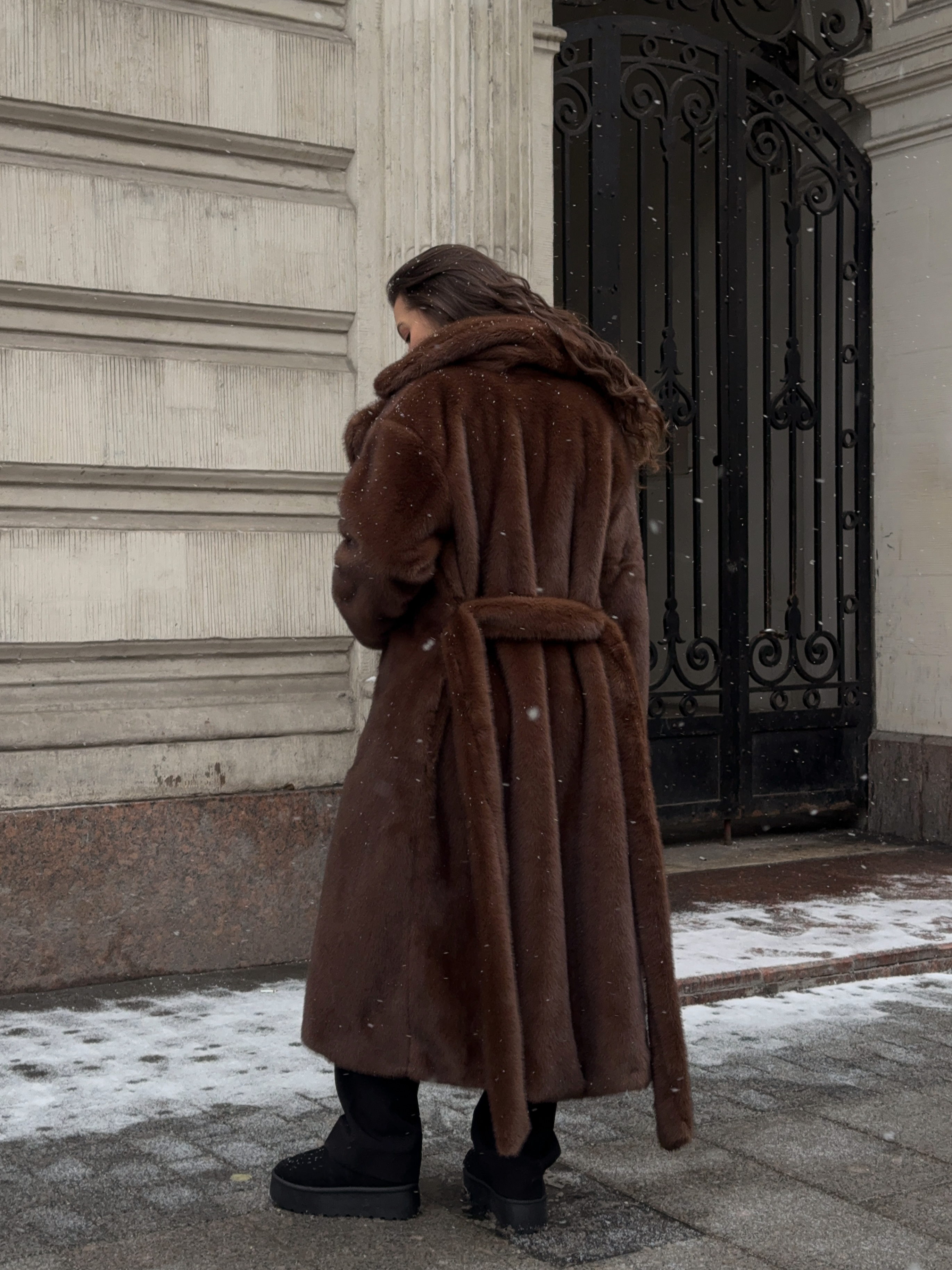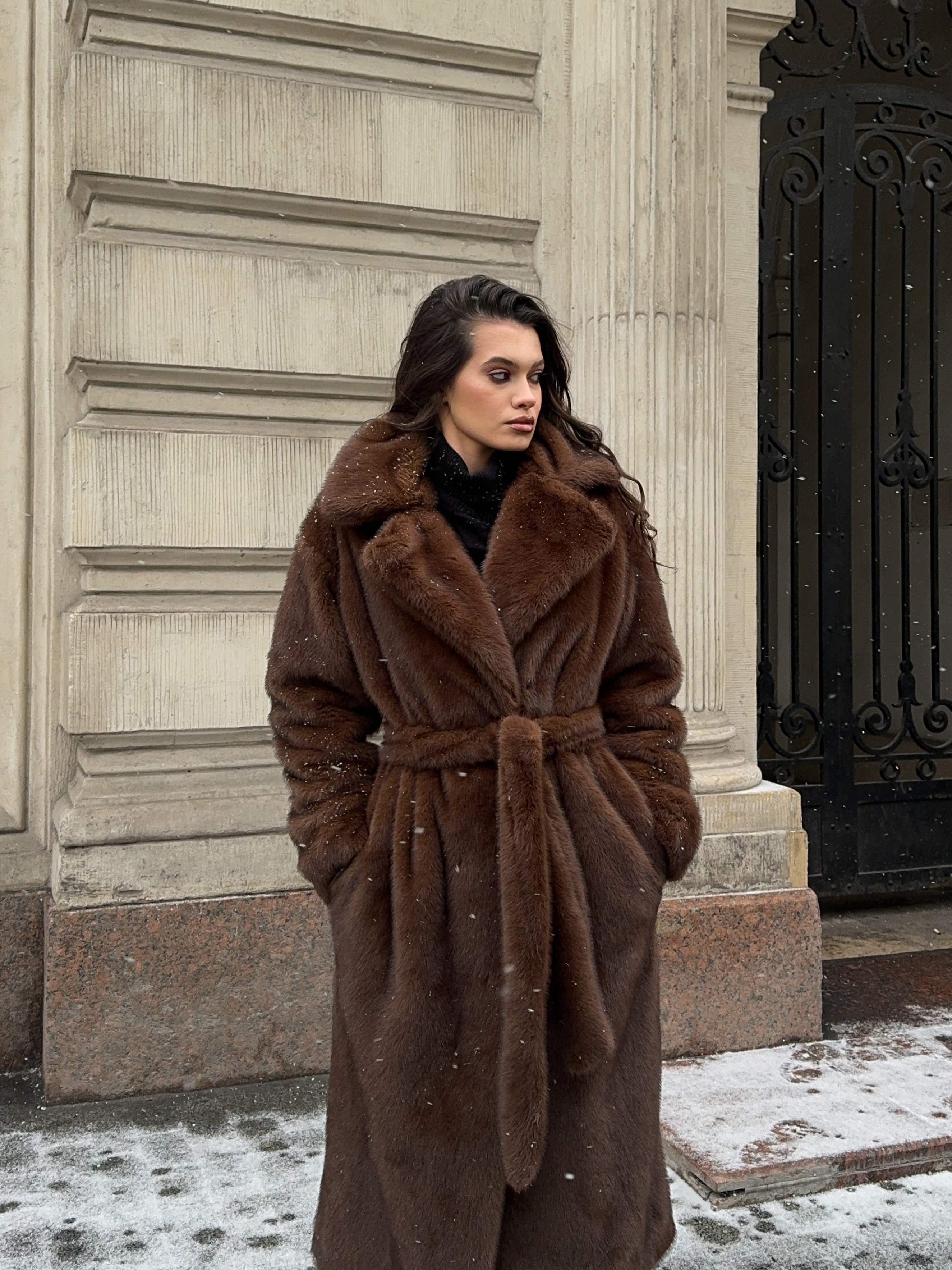 Шуба из эко-меха макси (шоколад)