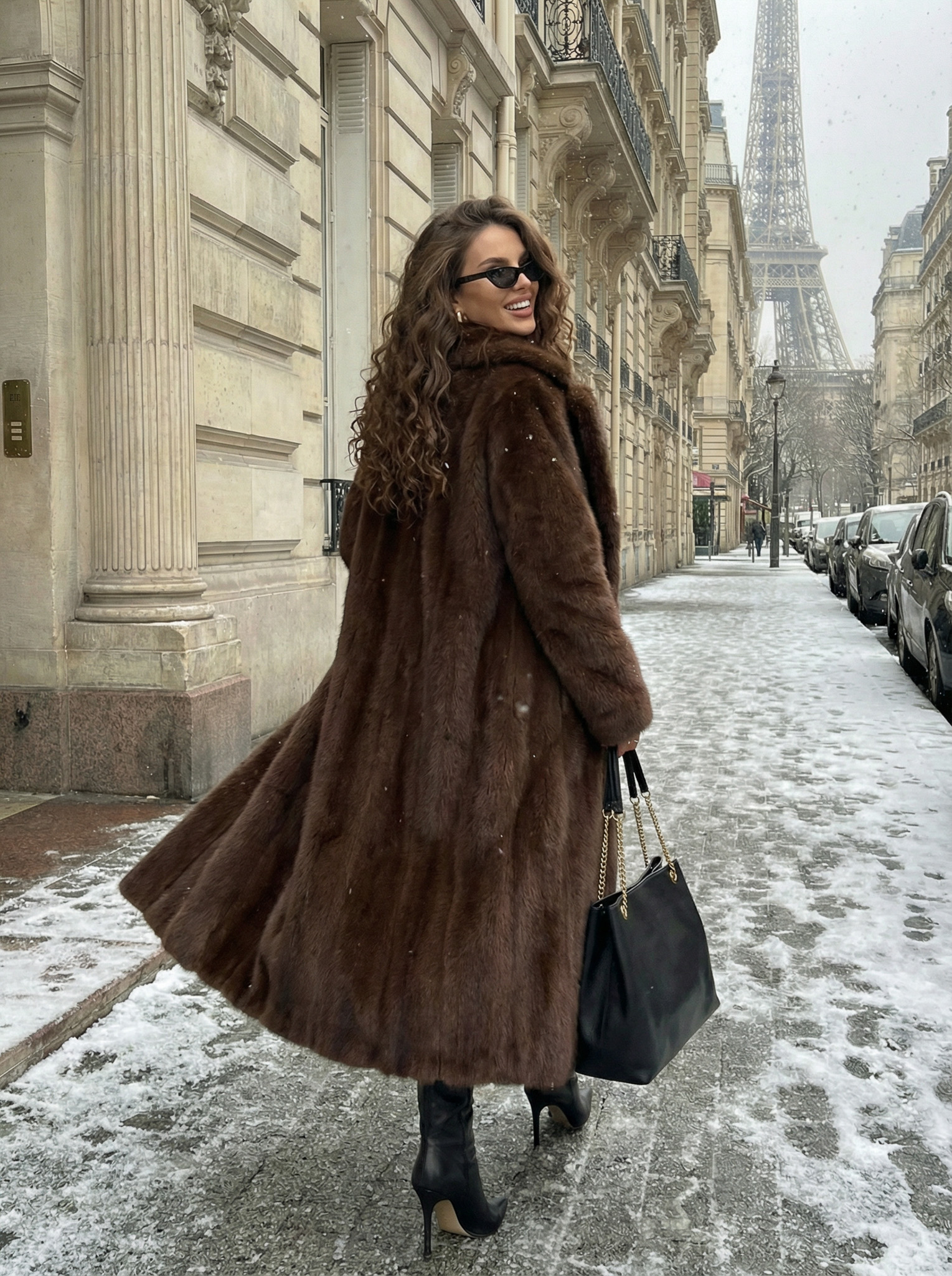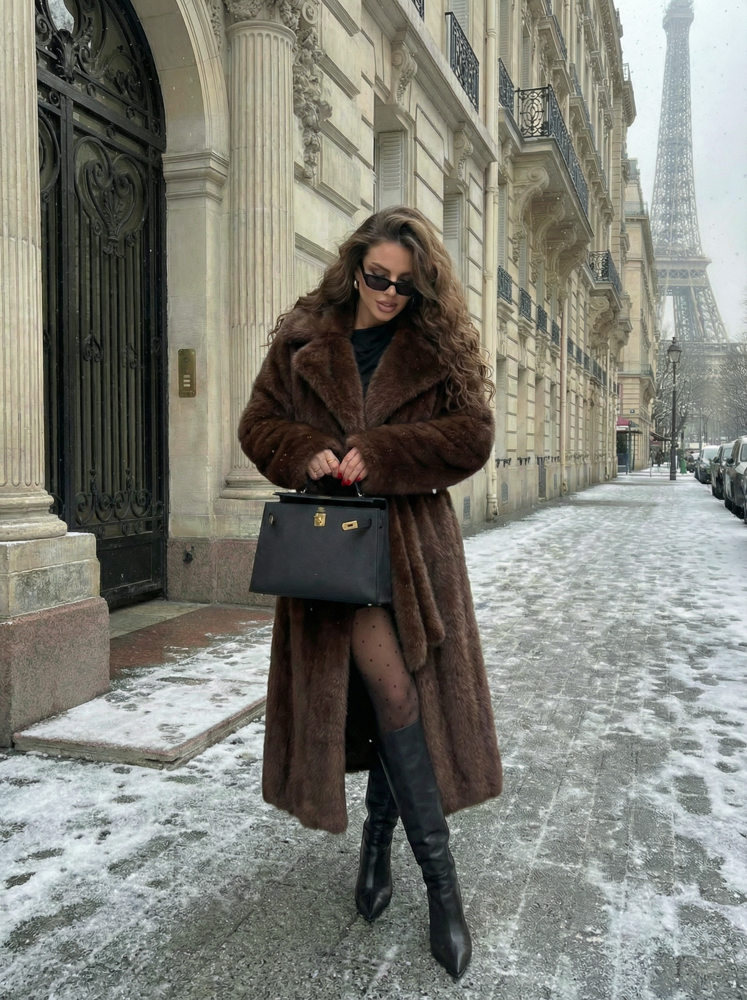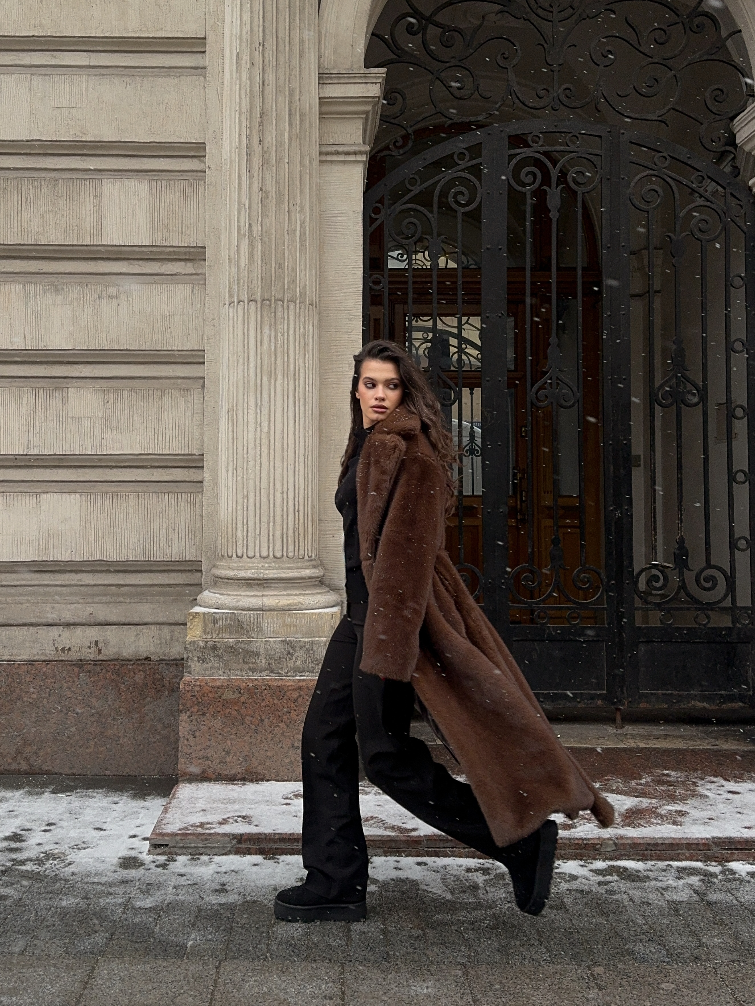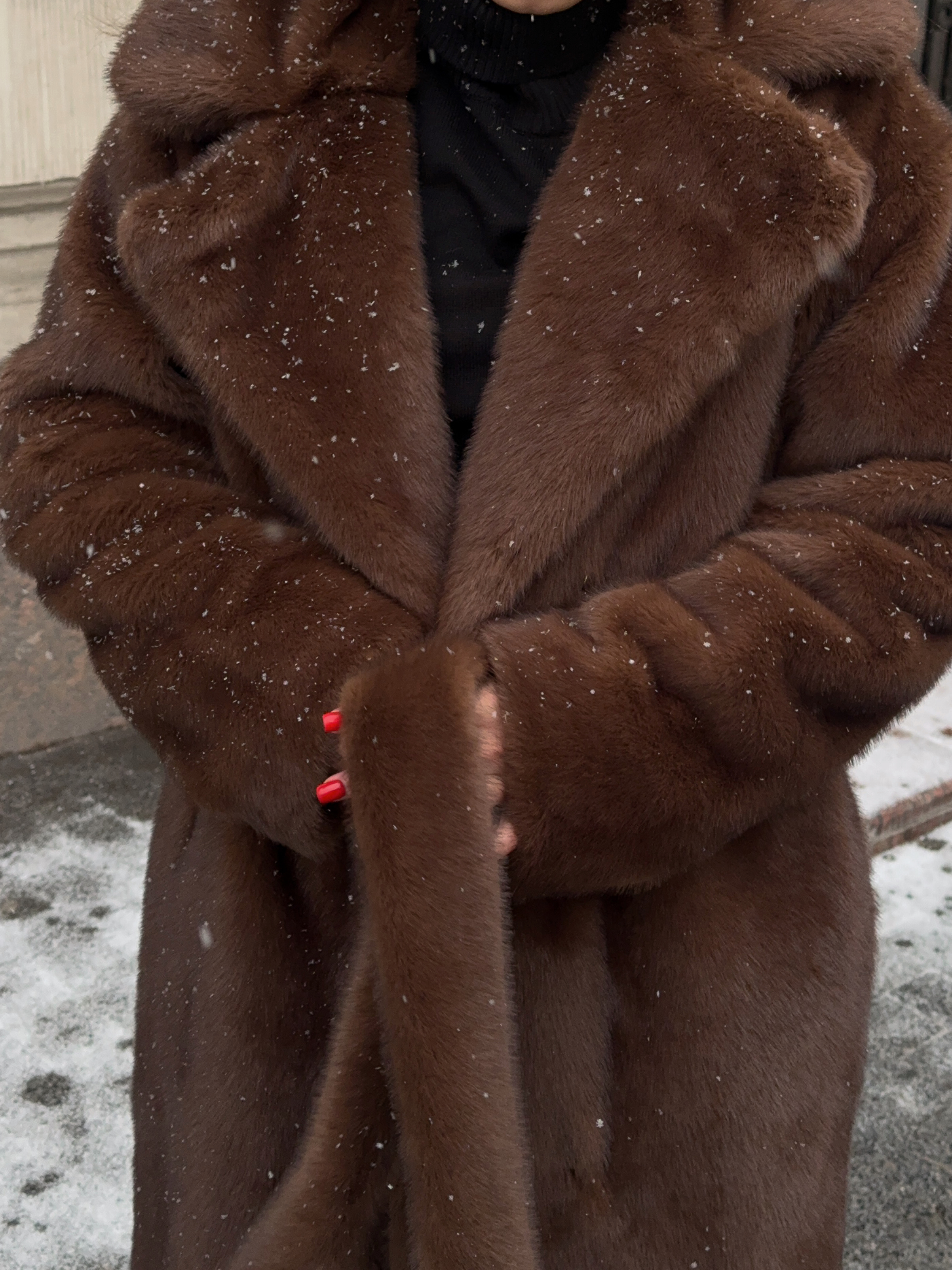 Шуба из эко-меха макси (шоколад)