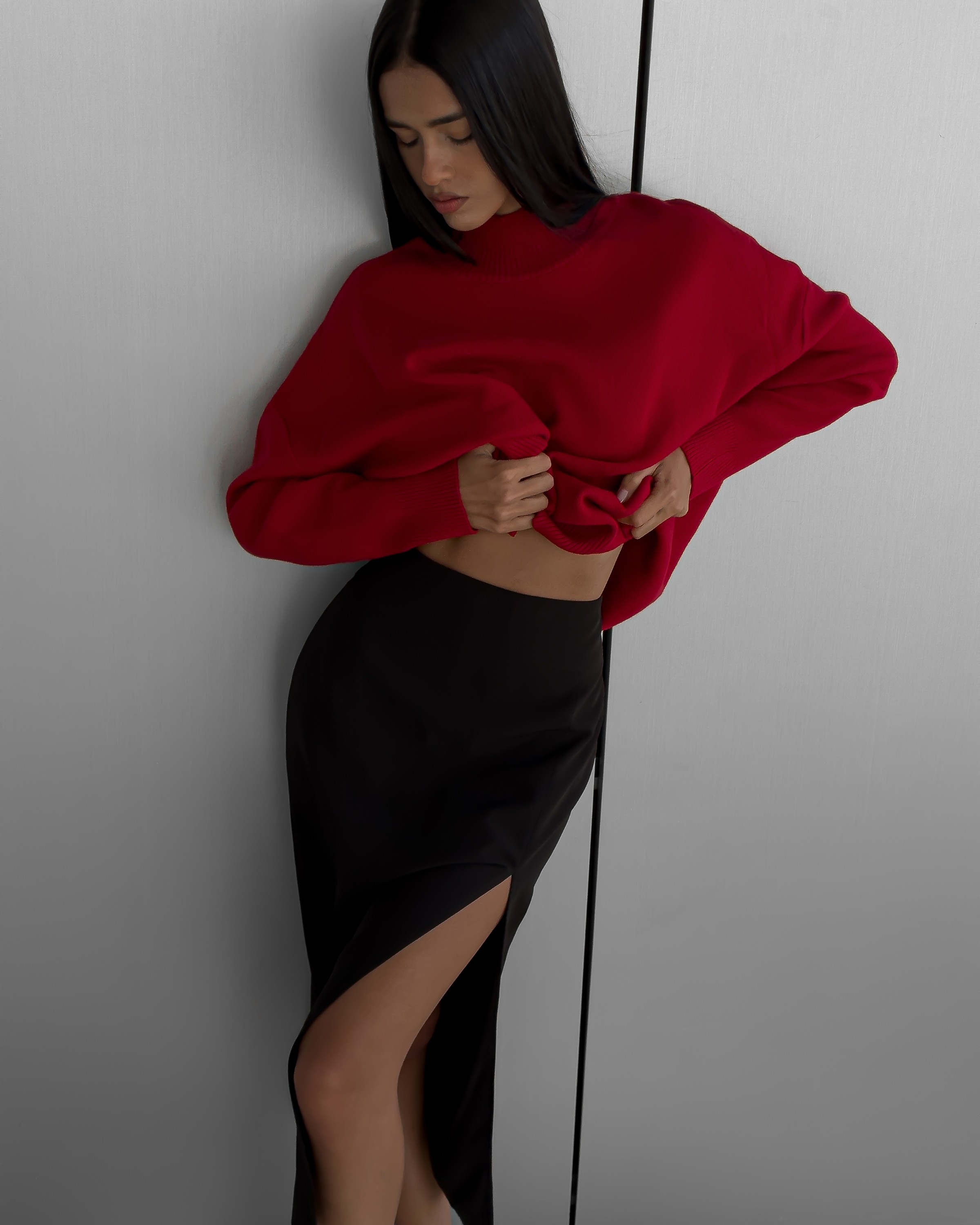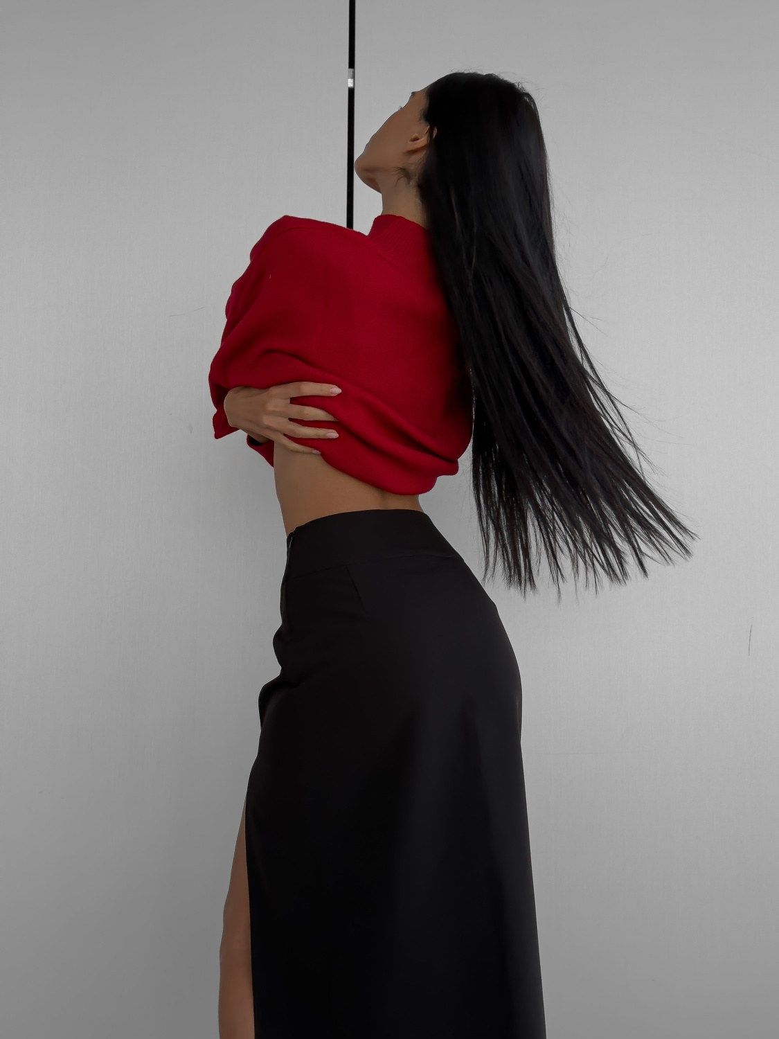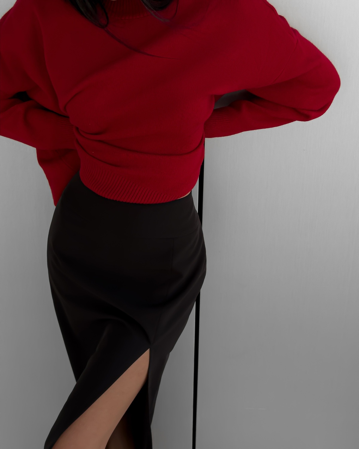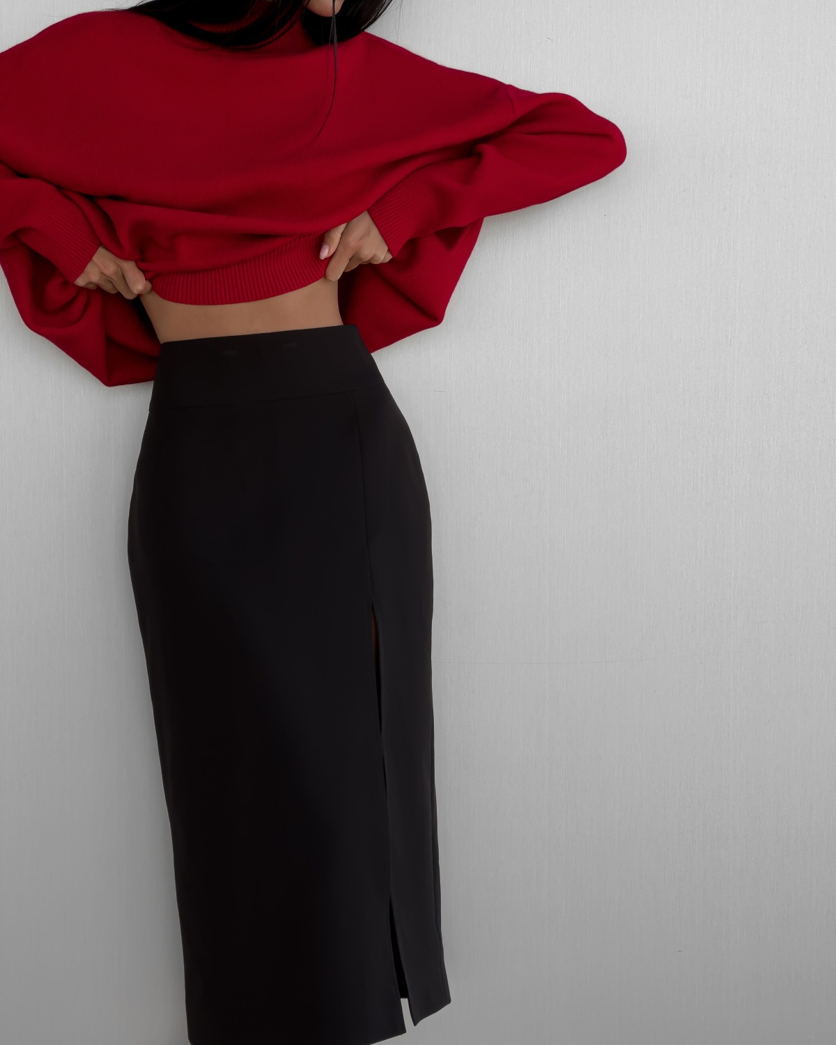 Наша идеальная юбка с разрезом. Она просто невероятно рисует силуэт за счёт посадки и длины. Сочетайте с мягкий трикотажным свитером или блузой.