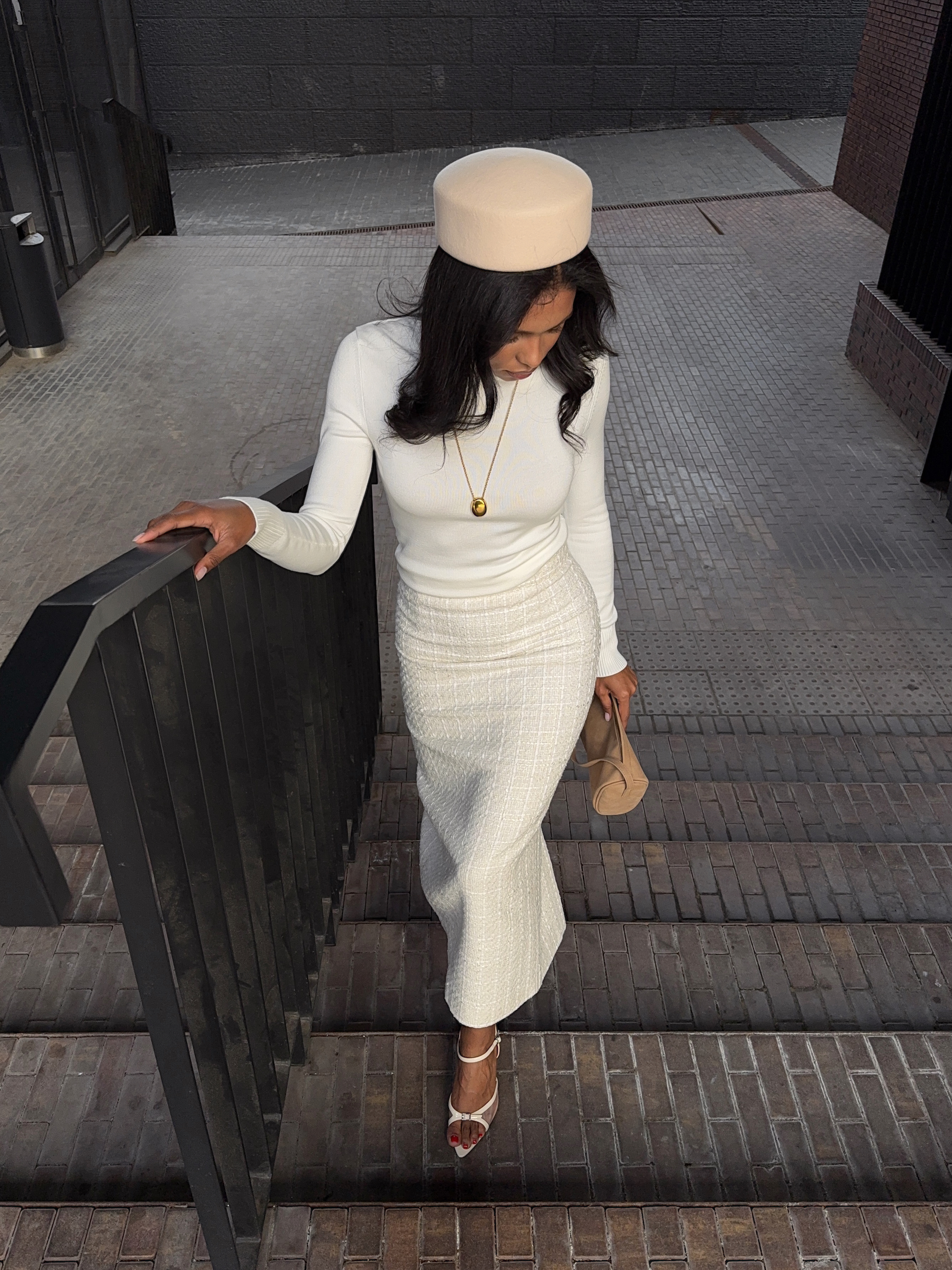 Юбка из твида, миди (молочный)
